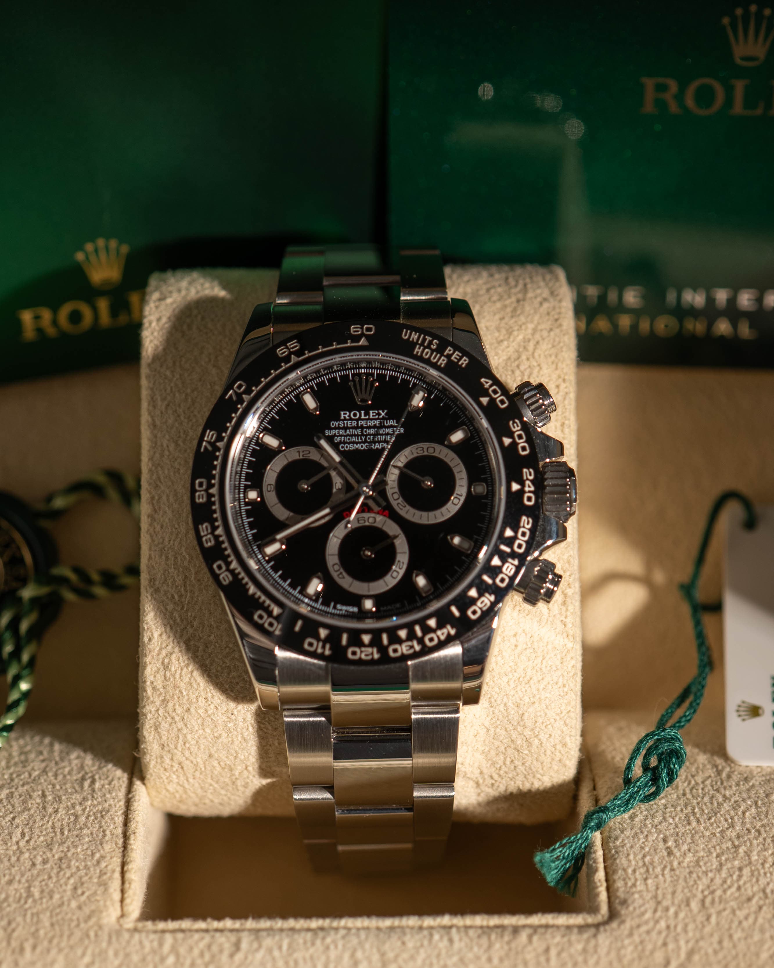 The Daytona 116500LN is a modern classic, powered by the robust in-house Caliber 4130 and finished with the highly durable Cerachrom bezel, making it one of the most collectible stainless steel Rolex models of recent years.