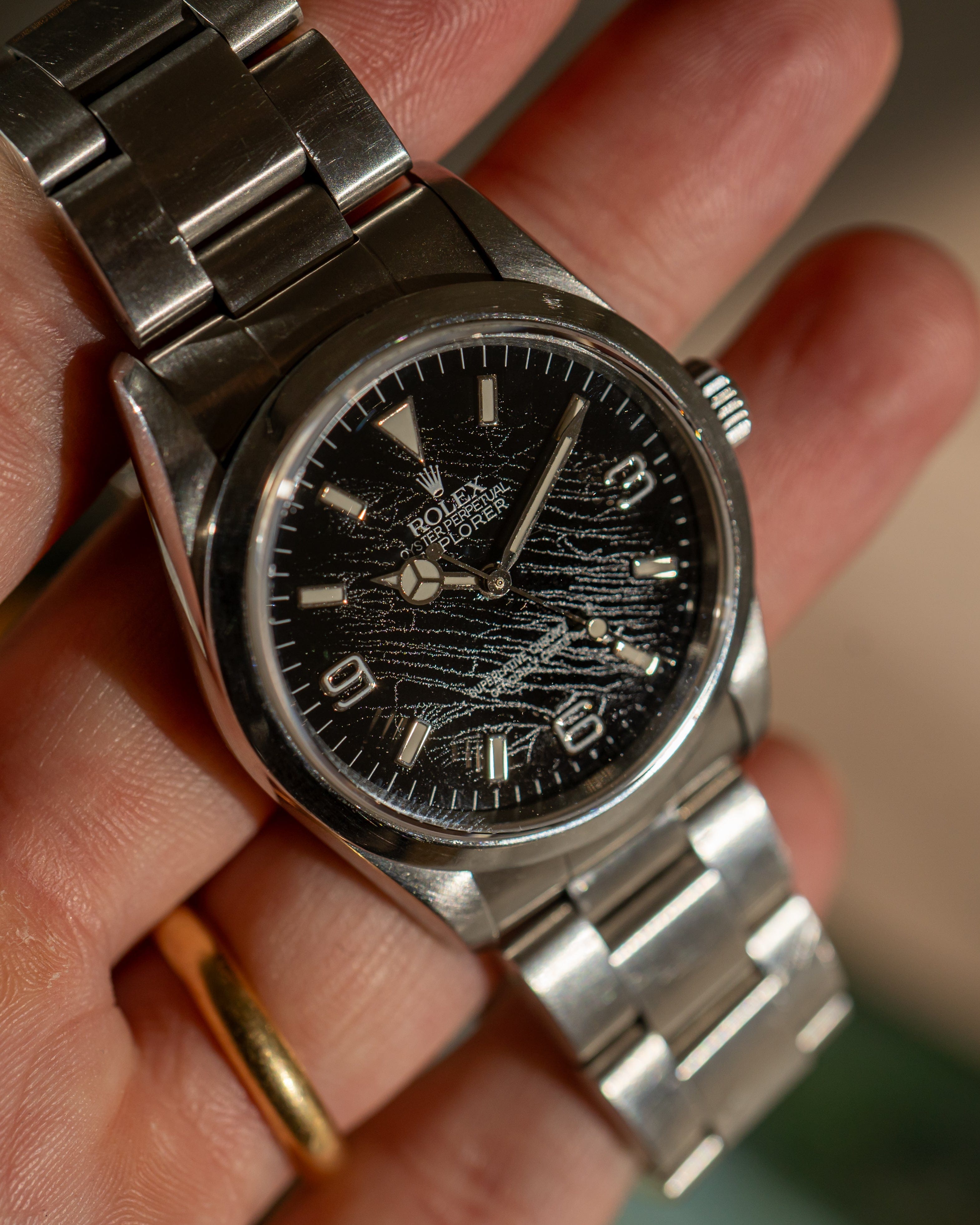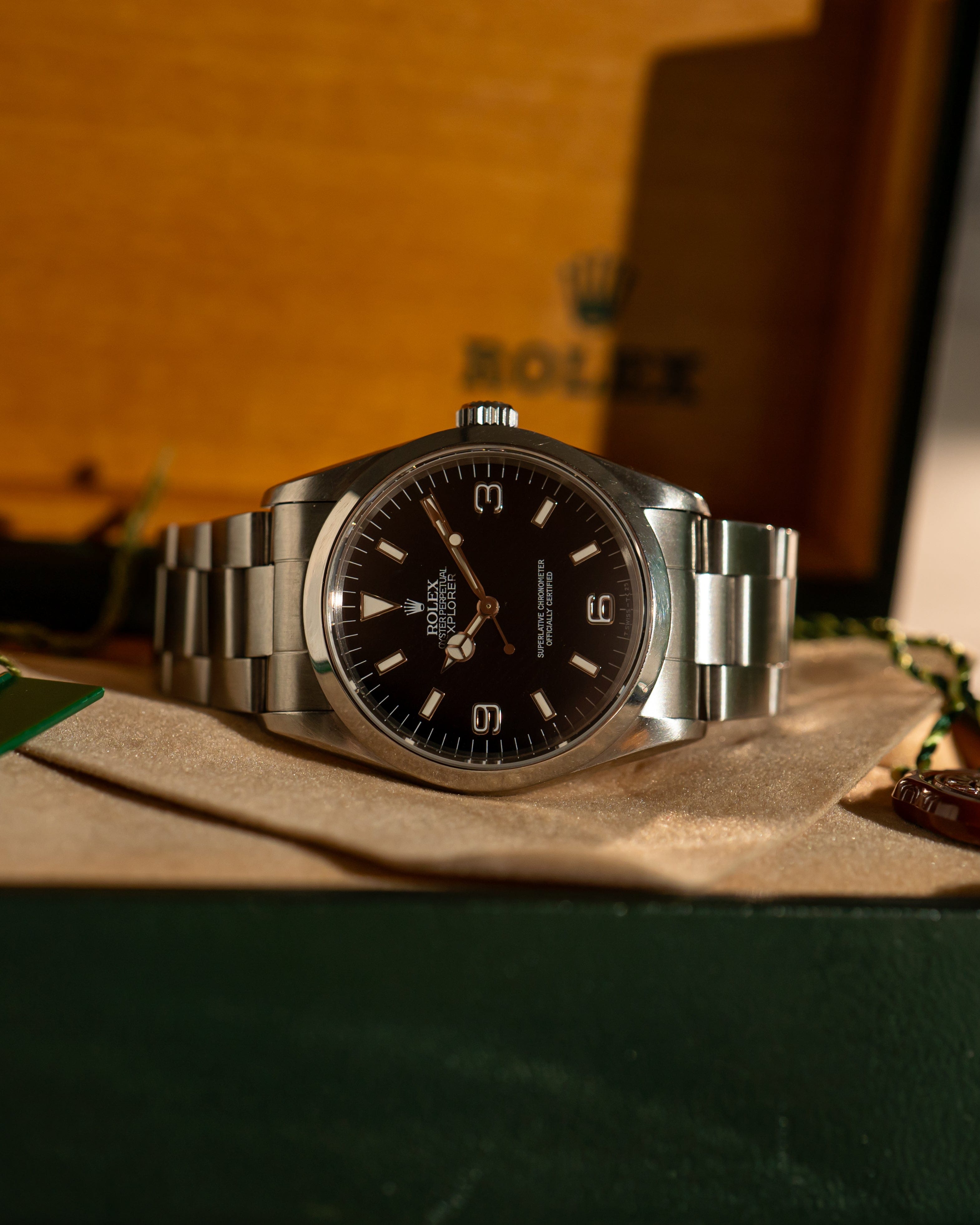 This W-serial 14270 is a standout early Explorer, combining the classic 36mm proportions with the seldom-seen frosted dial finish—making it a highly collectible piece for enthusiasts of vintage-era Rolex.
