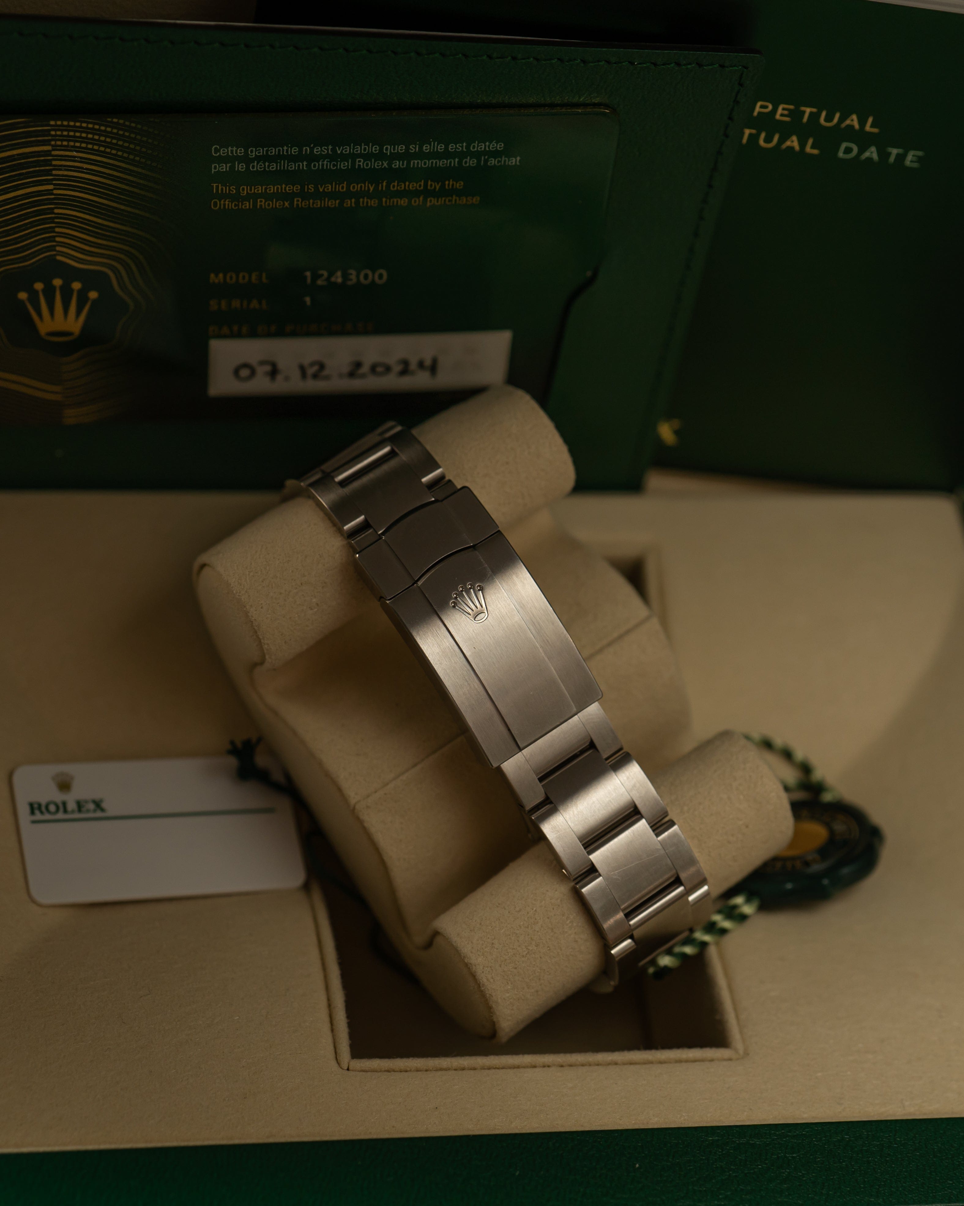 The Oyster Perpetual 41 ref. 124300 represents Rolex in its purest form - robust, precise and effortlessly wearable, powered by the modern Caliber 3230 with an impressive 70-hour power reserve.