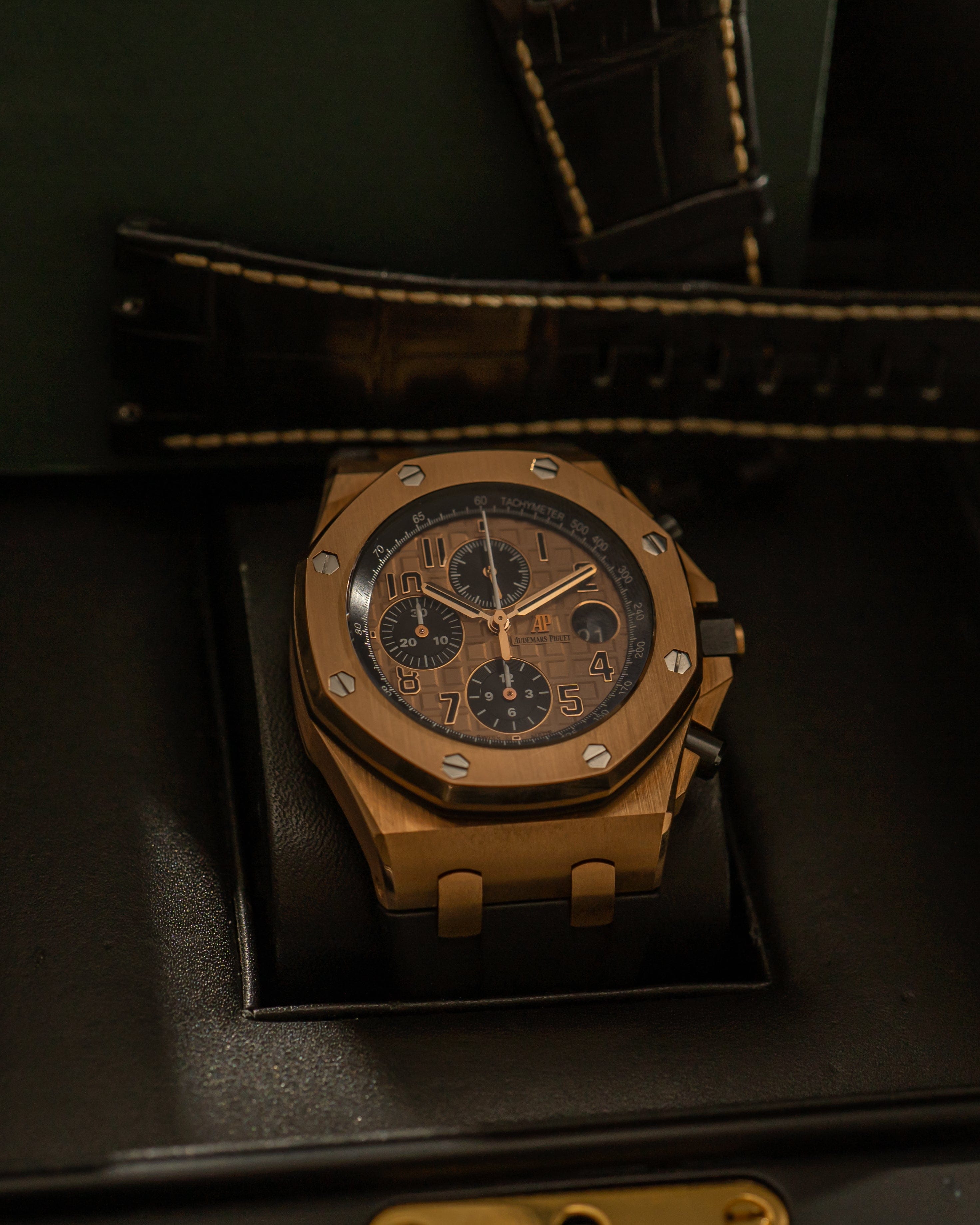 The Royal Oak Offshore 26470OR delivers unmistakable presence, premium materials, and proven chronograph performance - a standout choice for collectors seeking a bold Audemars Piguet with strong wrist presence and full set appeal.
