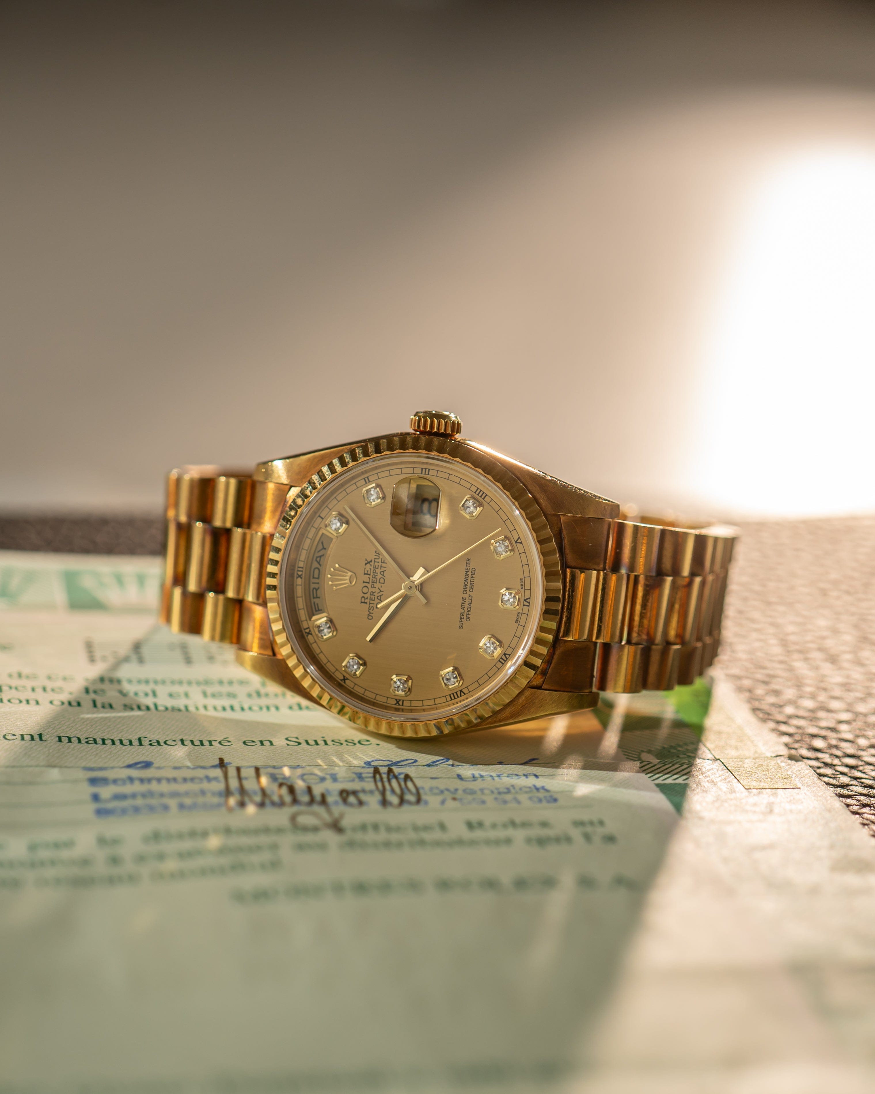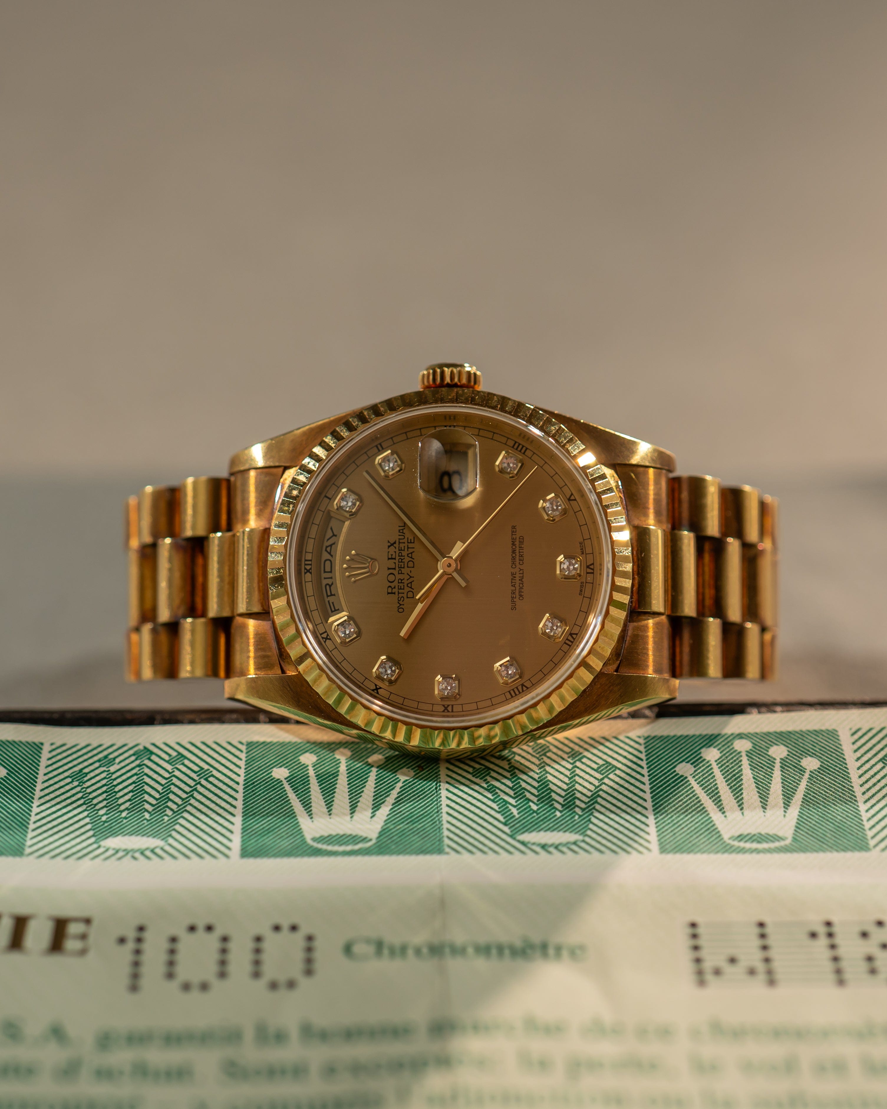 Day-Date 18238 – Rare Diamond Dial – Unpolished – With Papers (LC100)