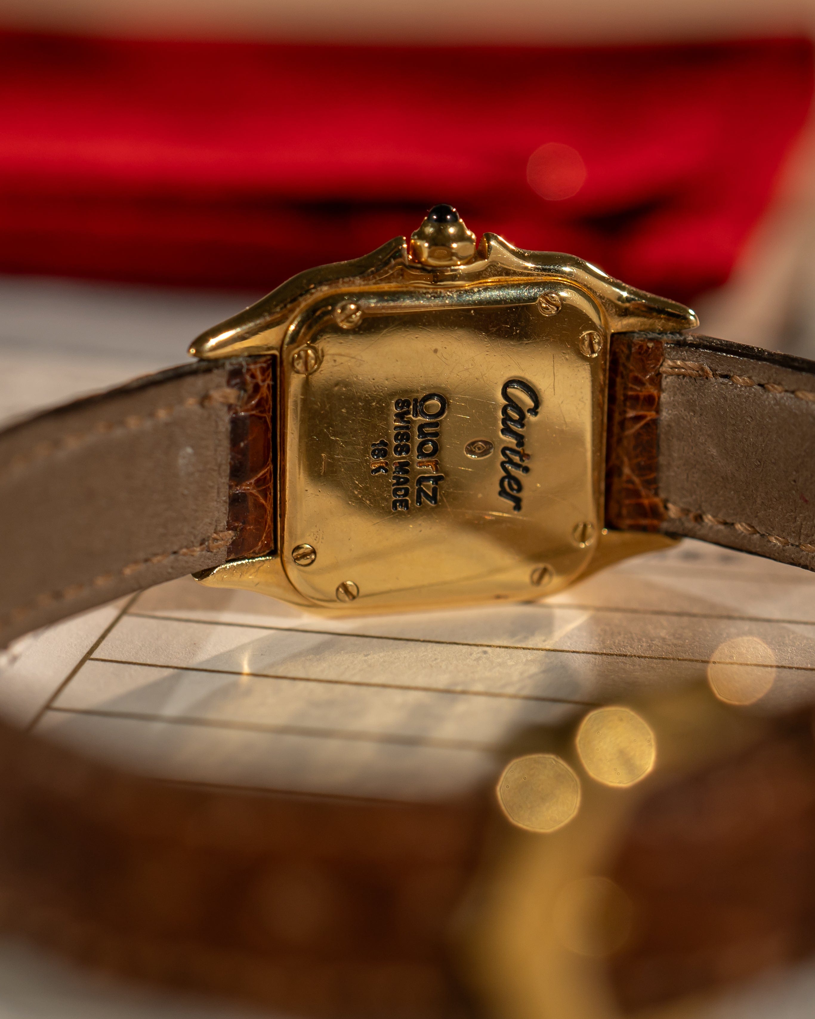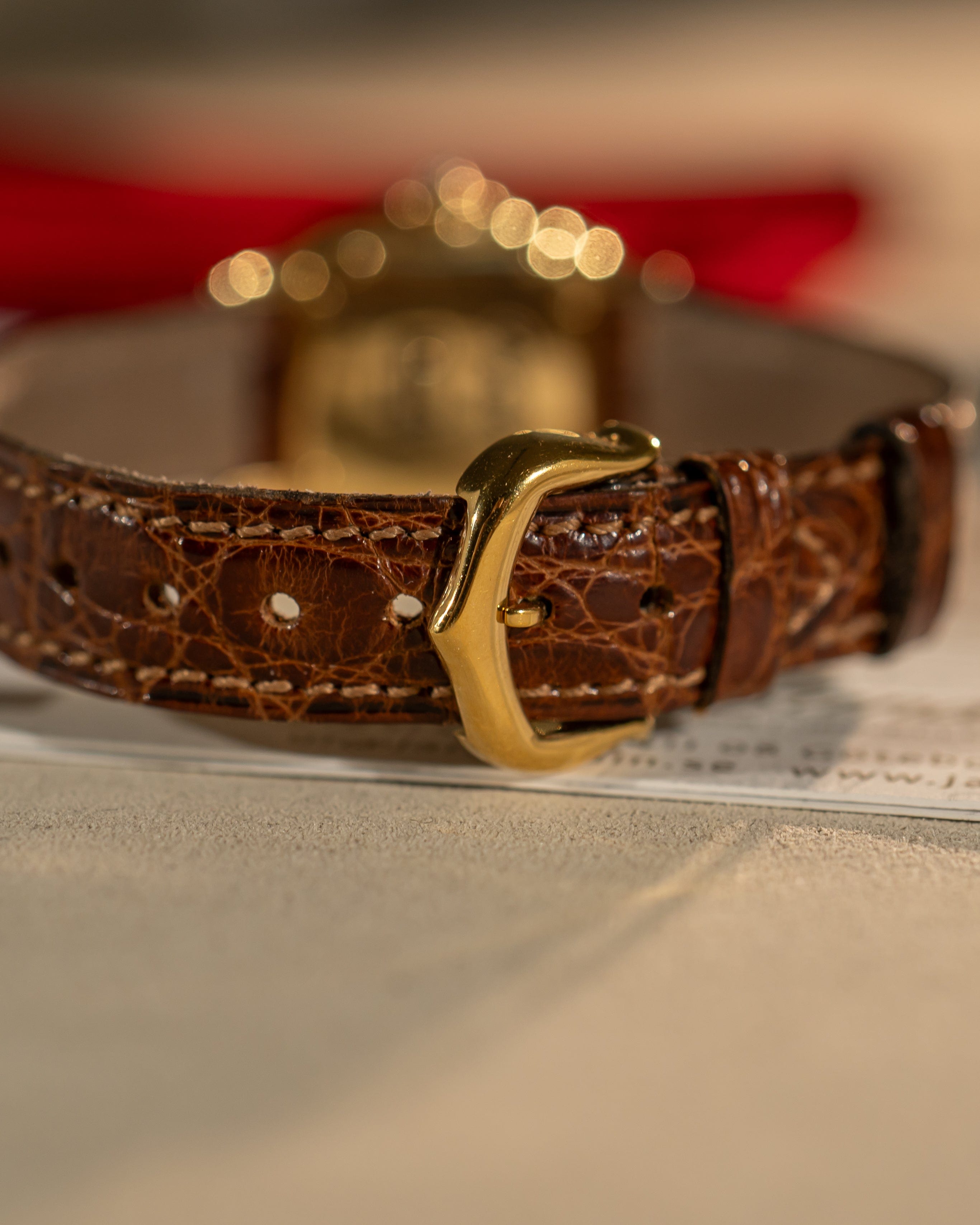 Strap: Original Cartier brown leather strap with gold-plated buckle