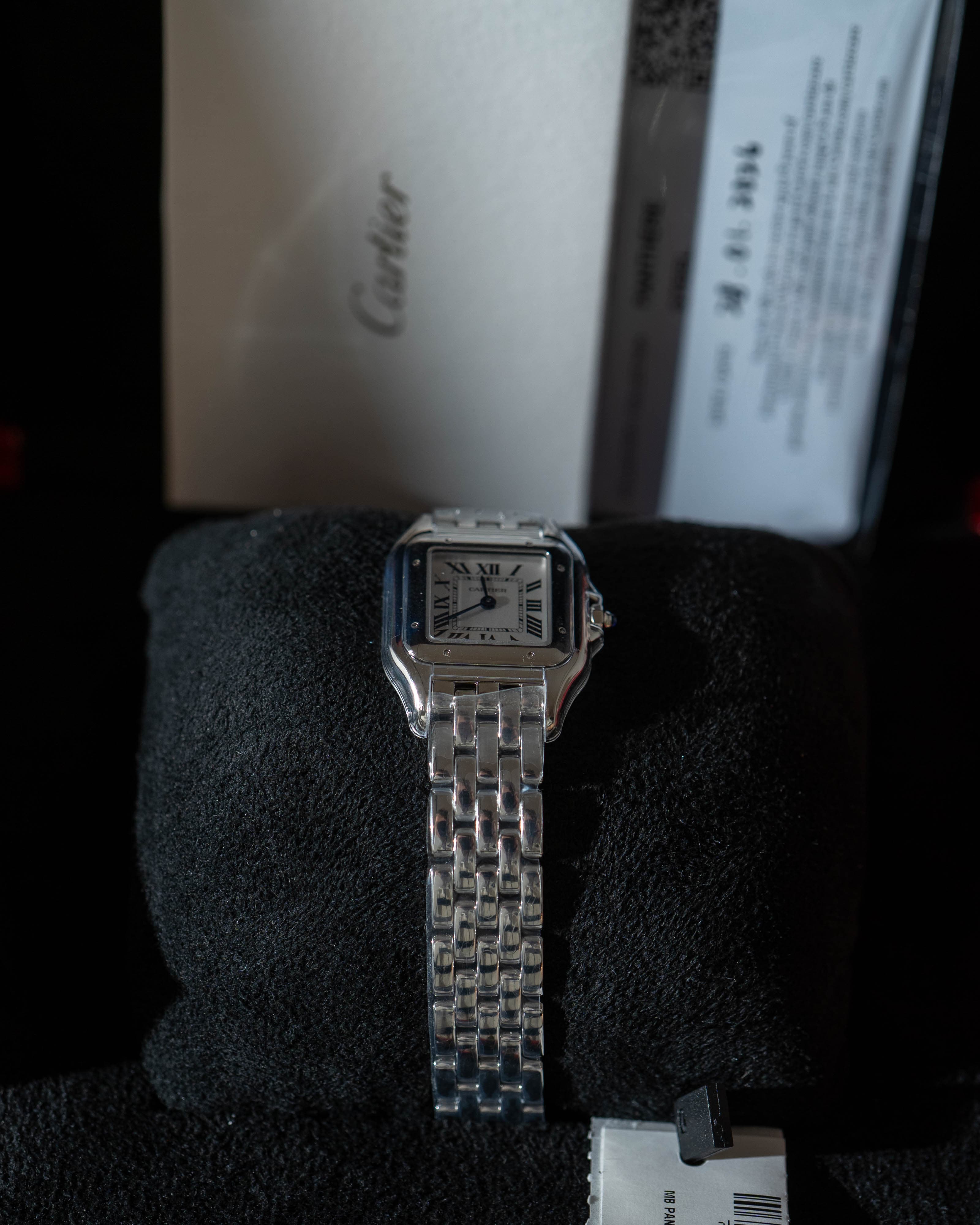 An enduring icon of Cartier design, the Panthère de Cartier is celebrated for its elegant proportions and unmistakable bracelet that wears like jewelry. This small-size stainless steel reference offers timeless sophistication, seamlessly blending watchmaking heritage with refined everyday luxury.