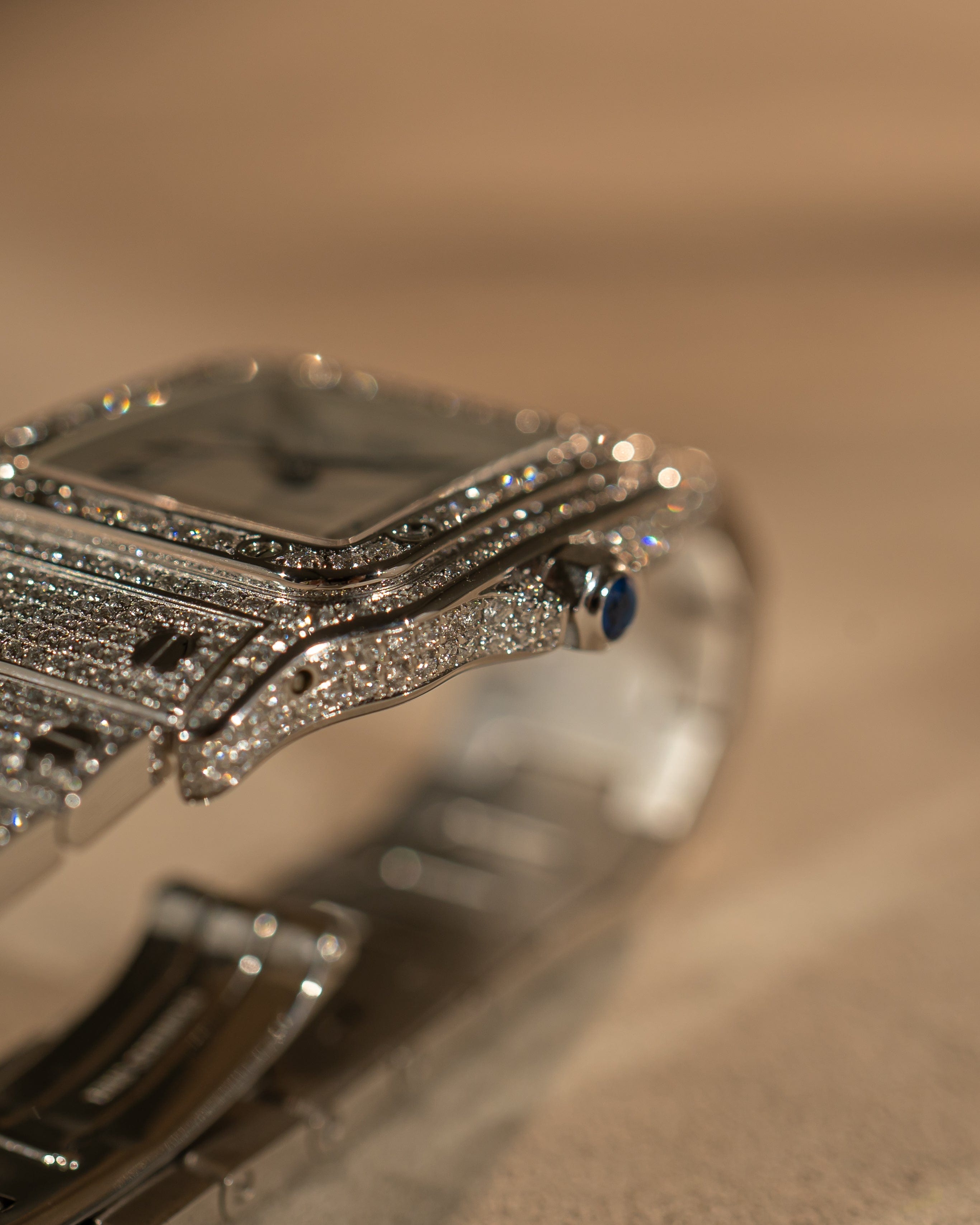 Combining Cartier’s heritage design with a modern iced-out aesthetic, it’s a statement piece that doesn’t go unnoticed.