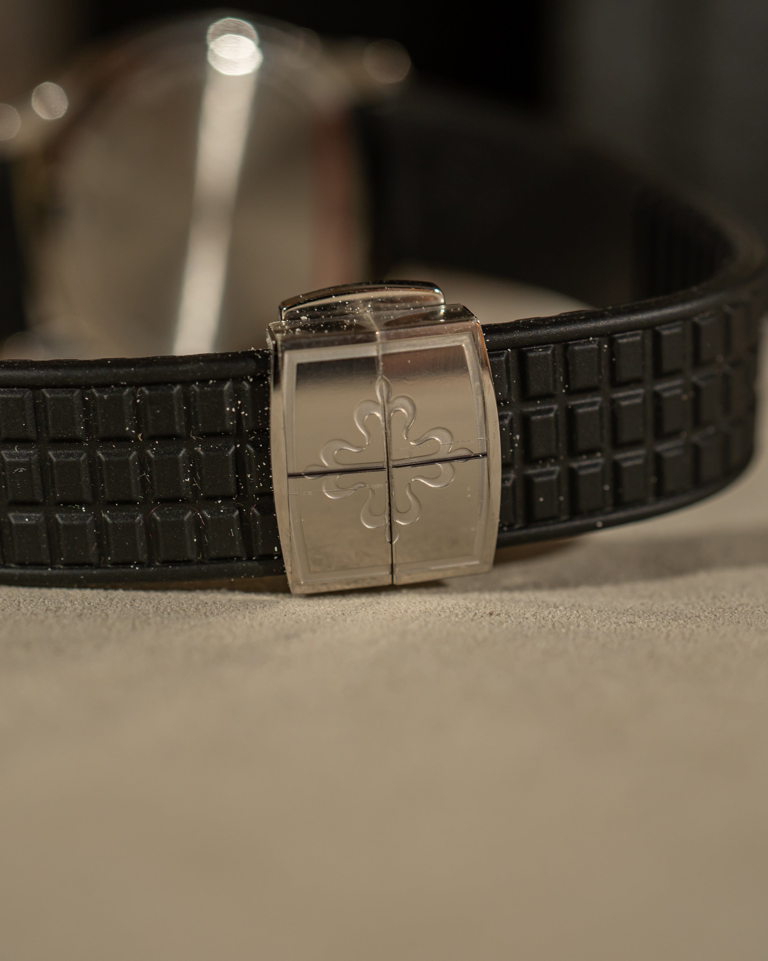 • Strap & clasp: brand-new Patek buckle and uncut Tropic rubber strap.