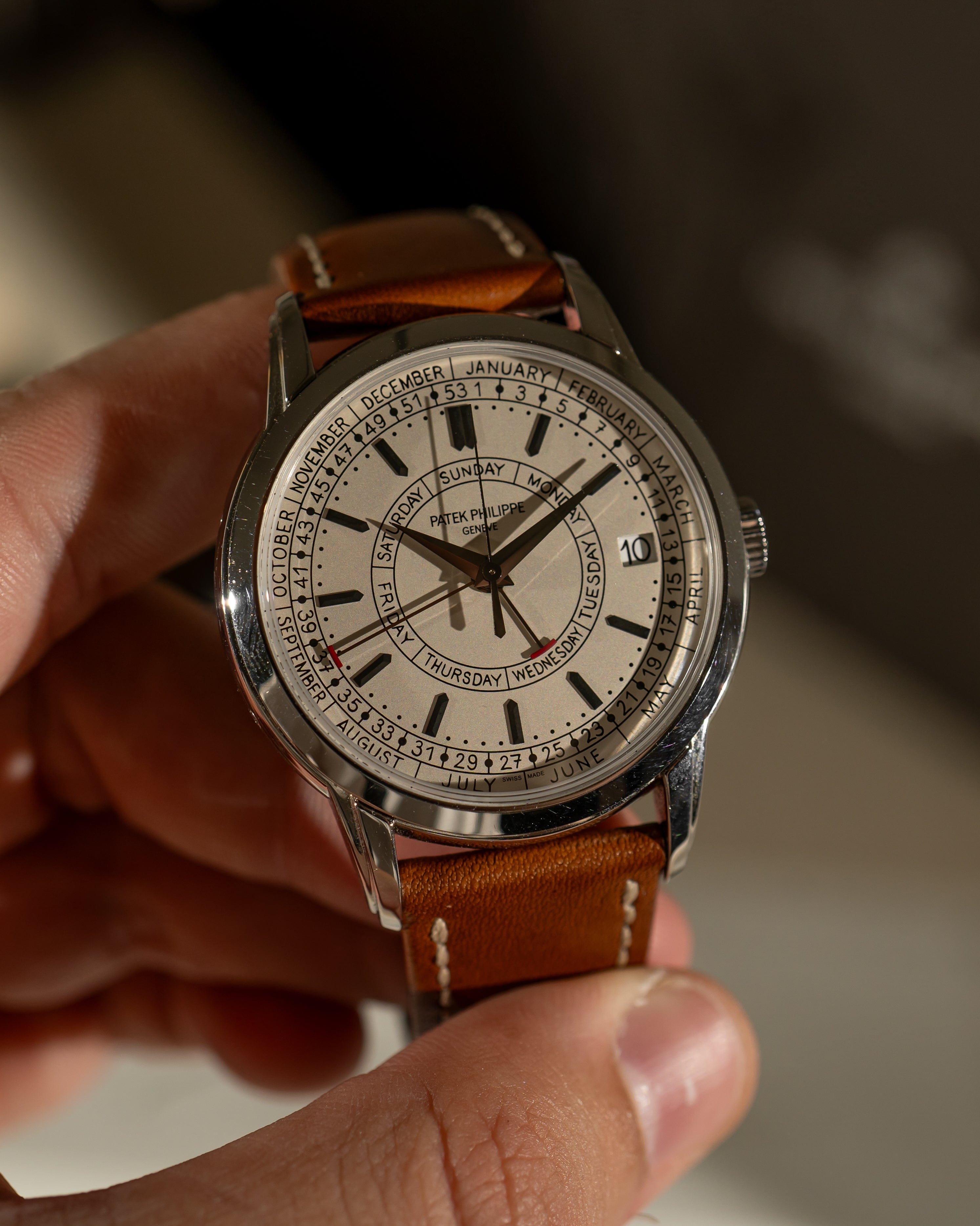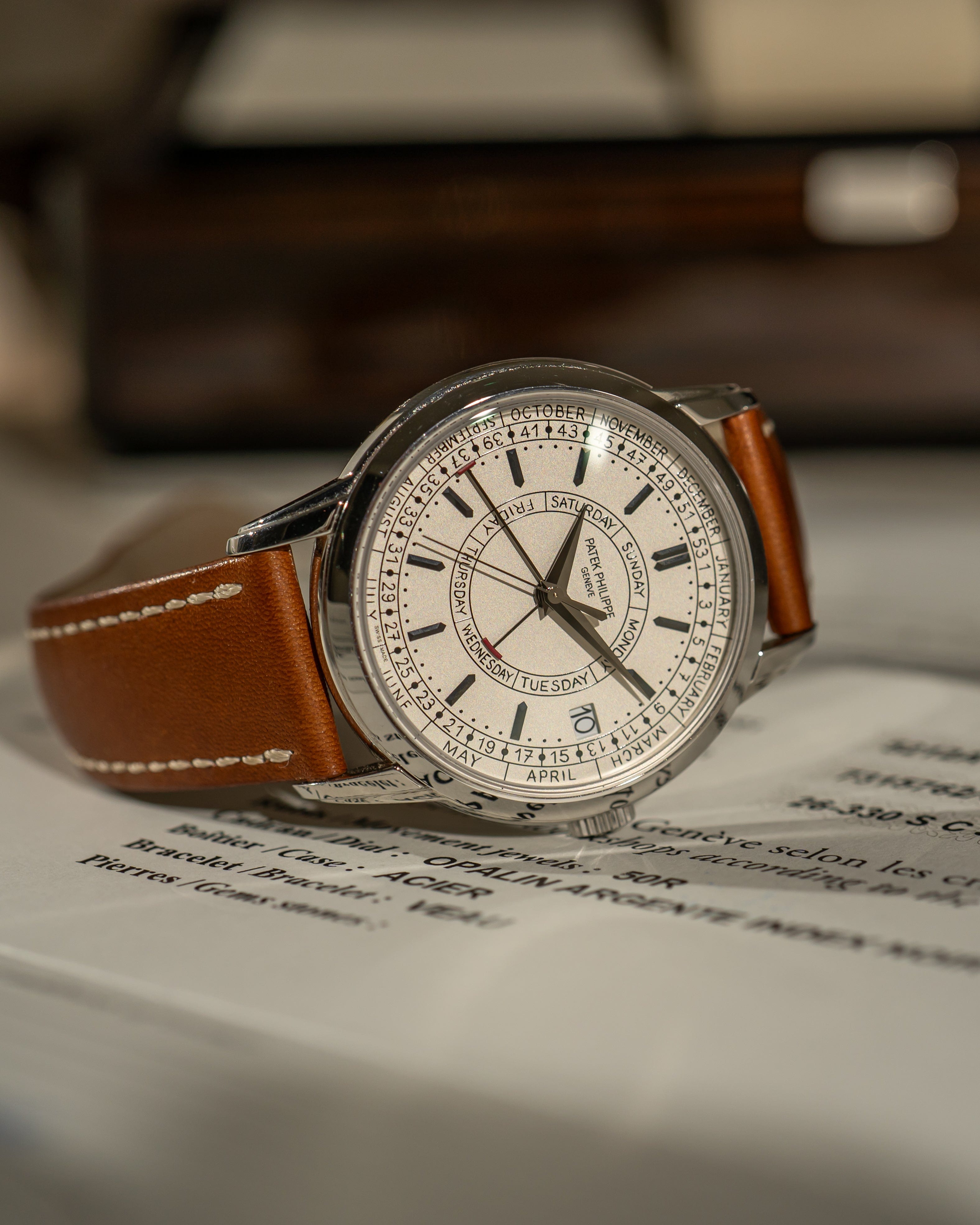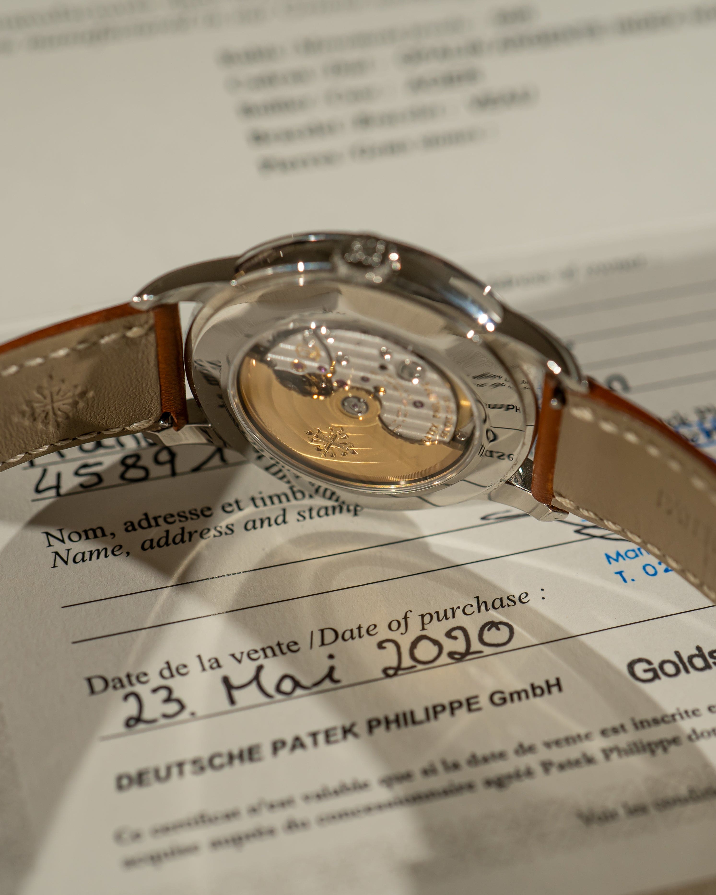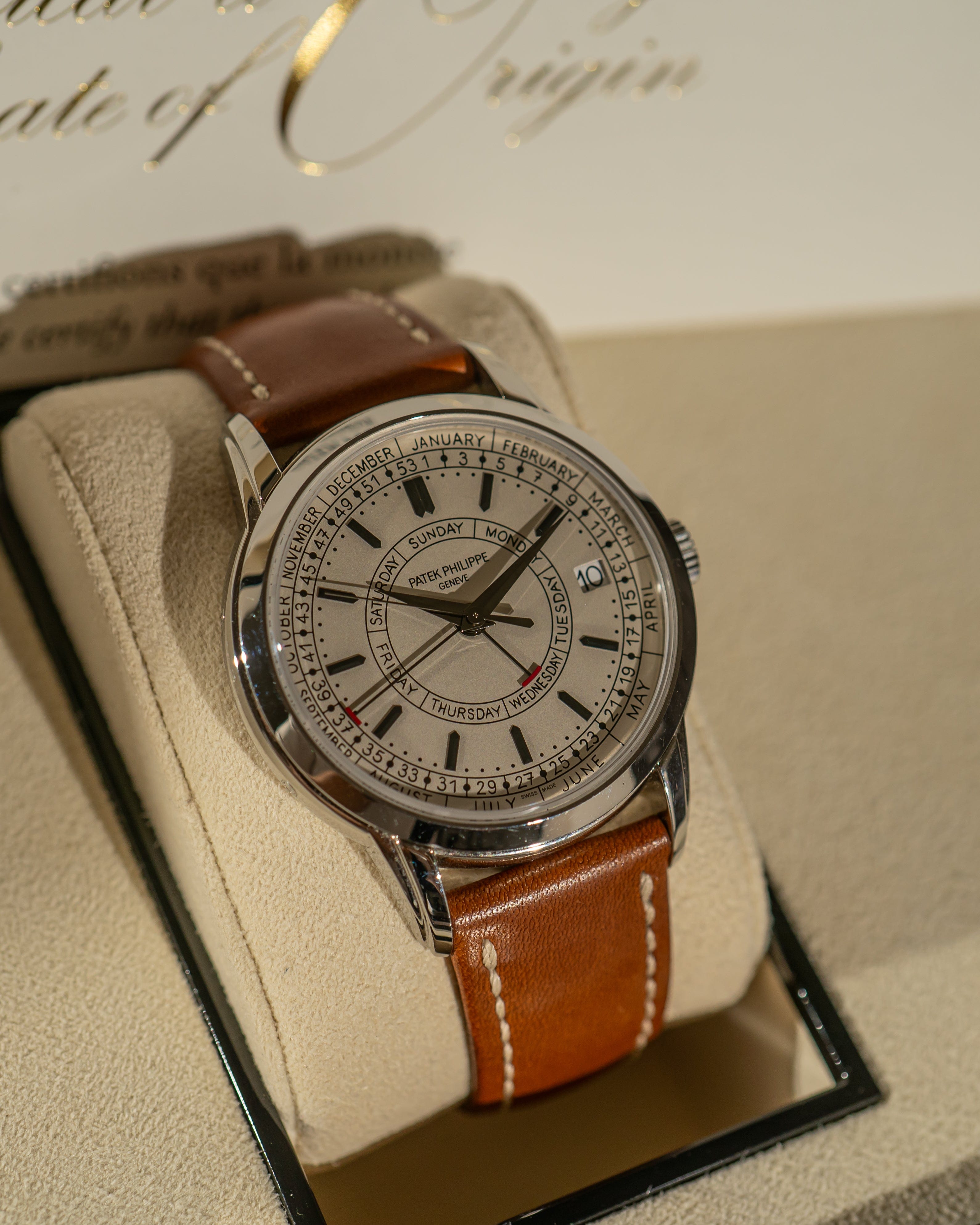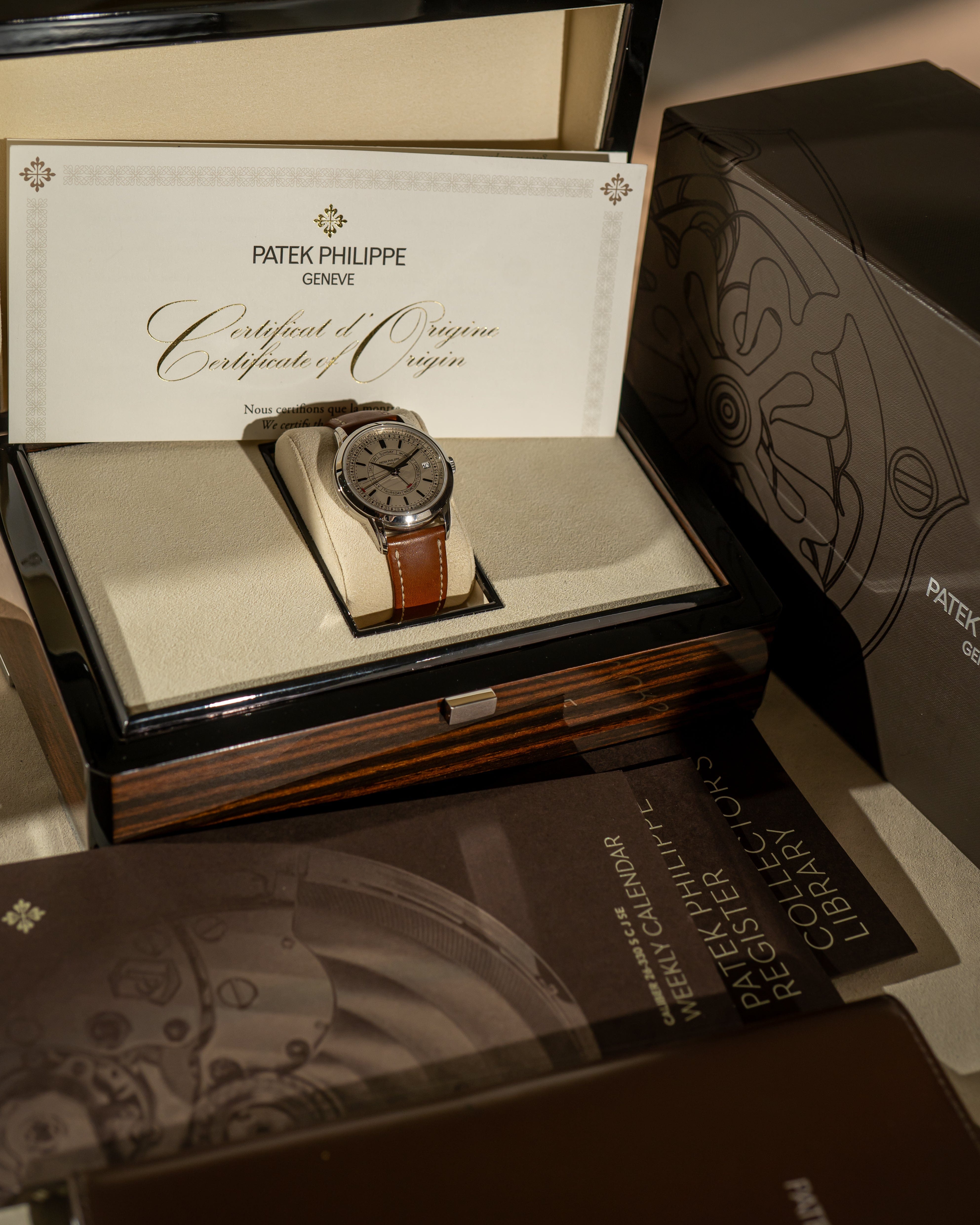 Strap: Brown calf leather with Patek Philippe steel pin buckle