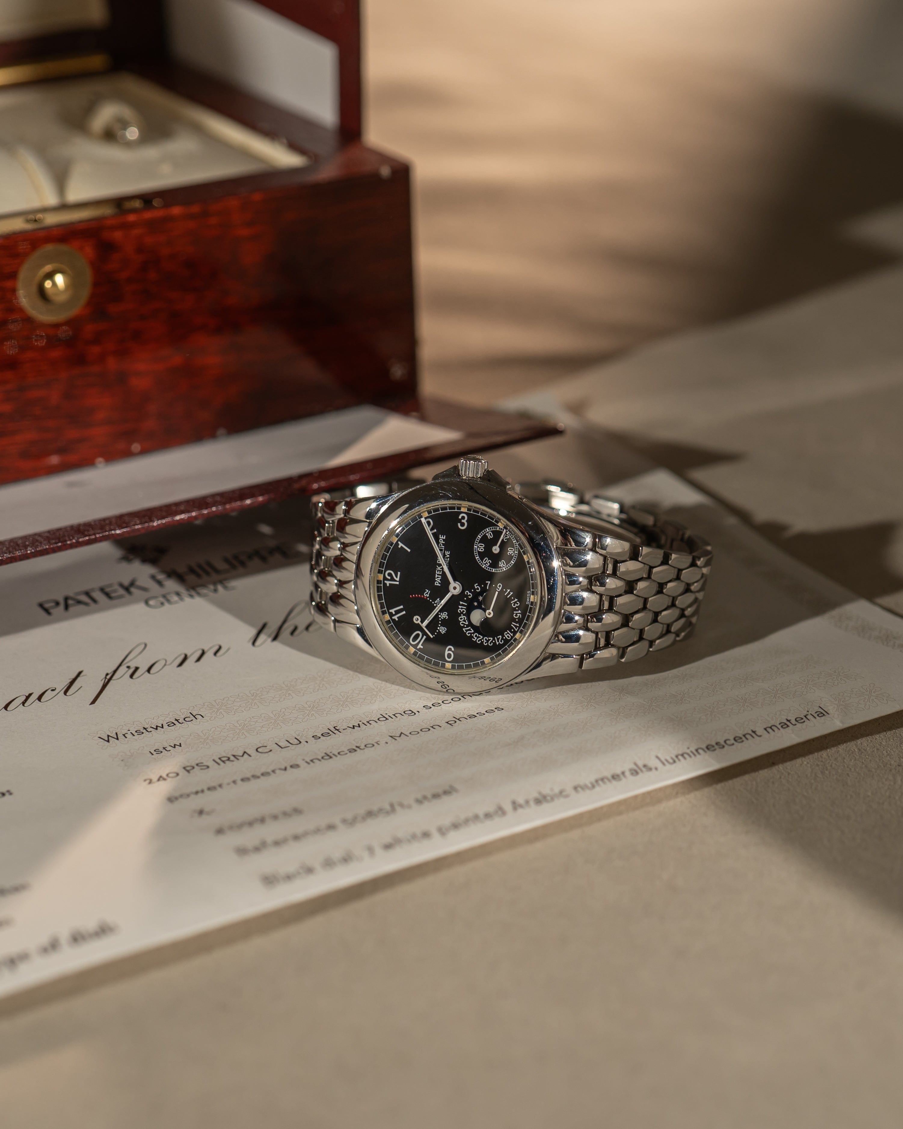 Movement: Patek Philippe Caliber 240 PS IRM C LU, automatic, 22k micro-rotor, ~48-hour power reserve