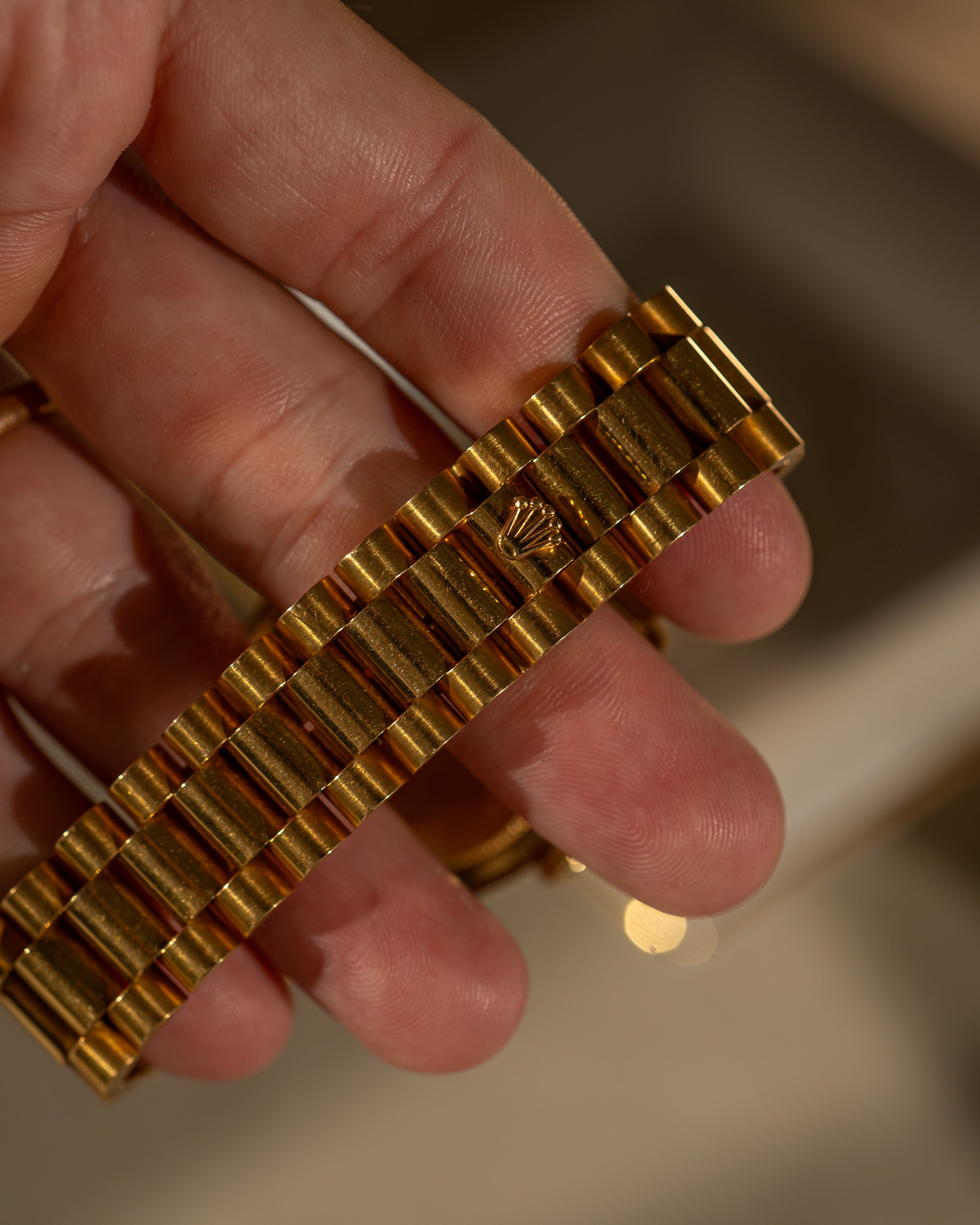 Bracelet: 18k yellow gold President bracelet with concealed Crownclasp