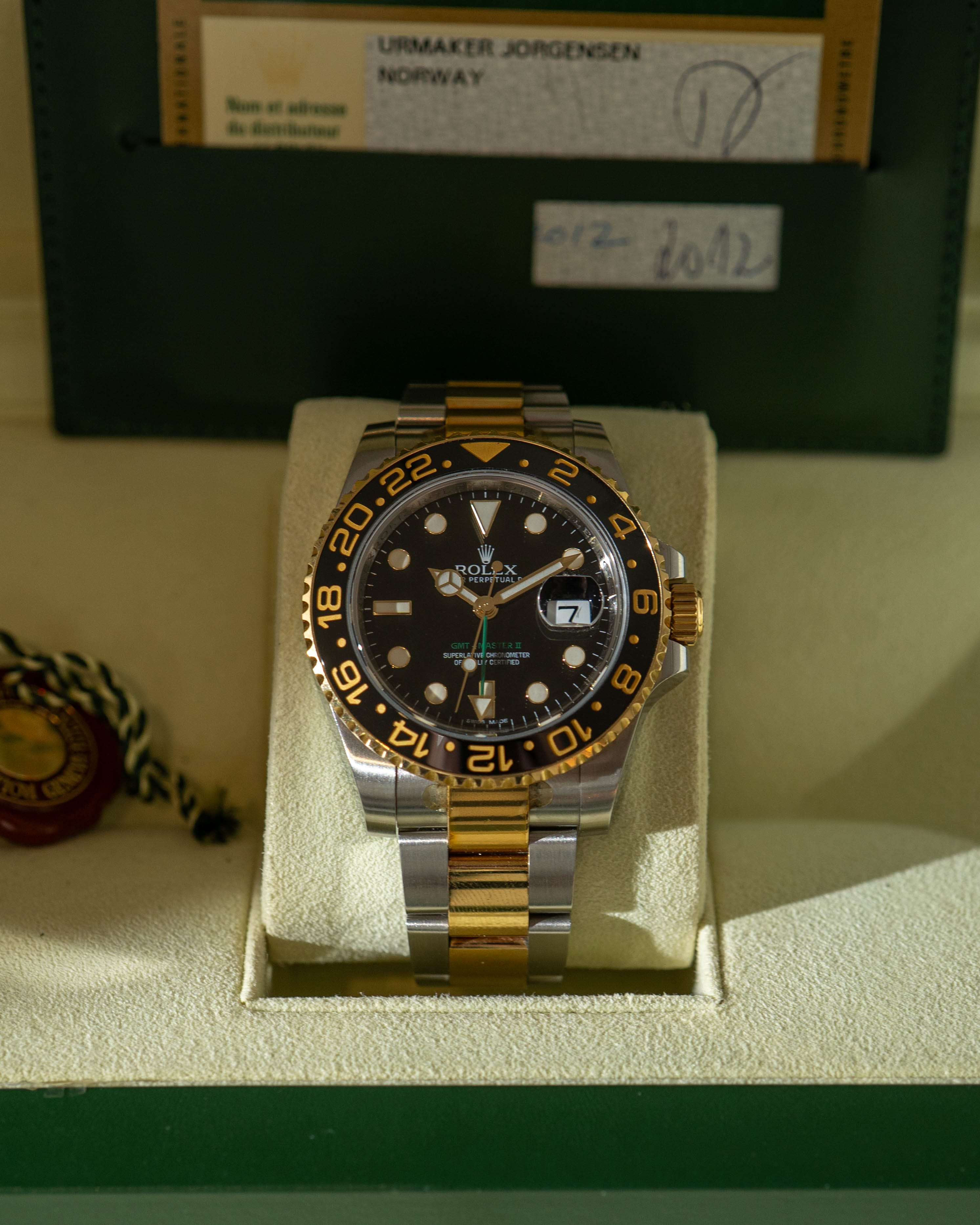 This 116713LN was originally sold in Norway and remains unpolished, making it a desirable example for collectors seeking originality, complete with box and certificate and the proven Caliber 3186 GMT movement.