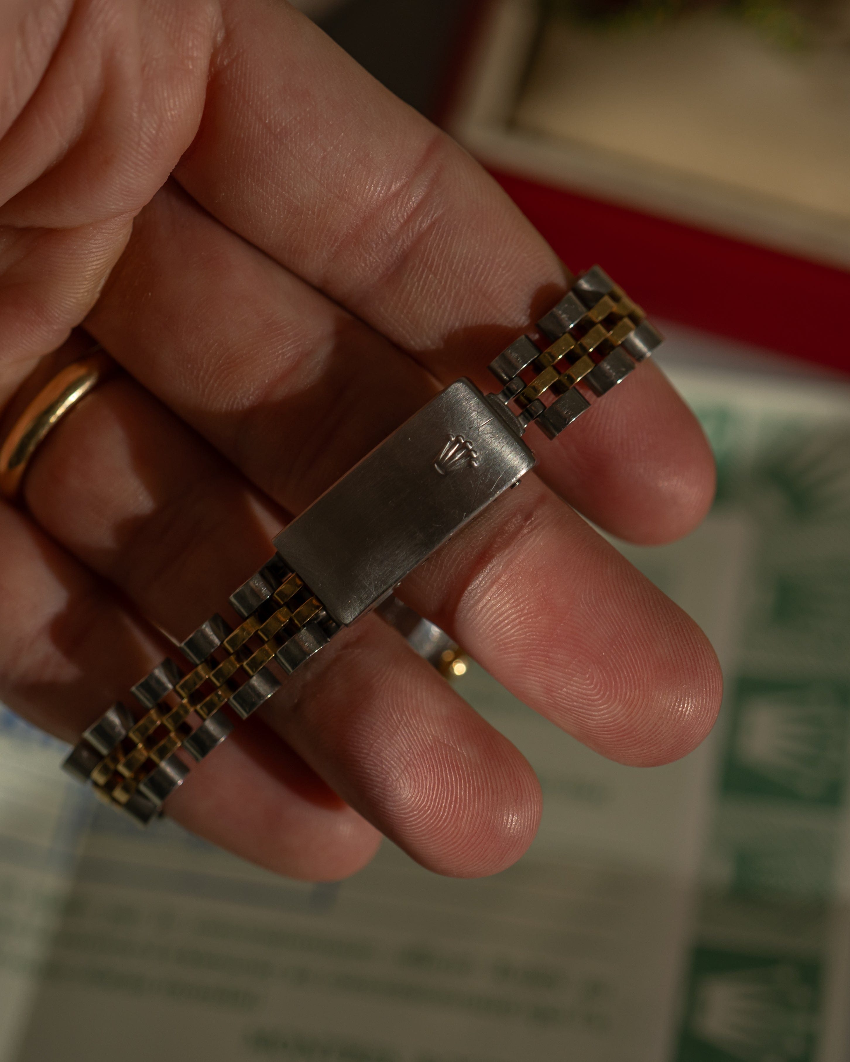 A timeless classic in the Rolex Lady-Datejust line, this two-tone 69173 features a champagne dial and fluted bezel—elegantly balancing vintage charm with enduring style.