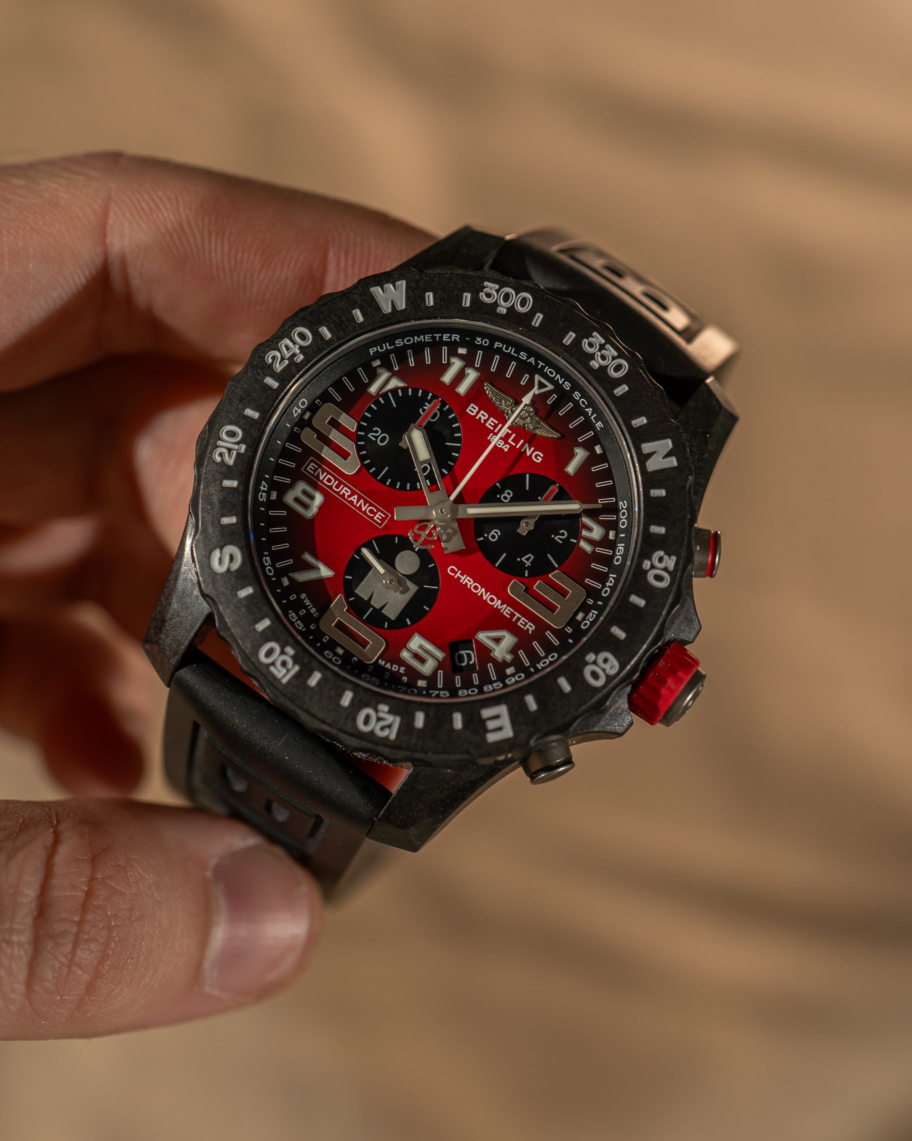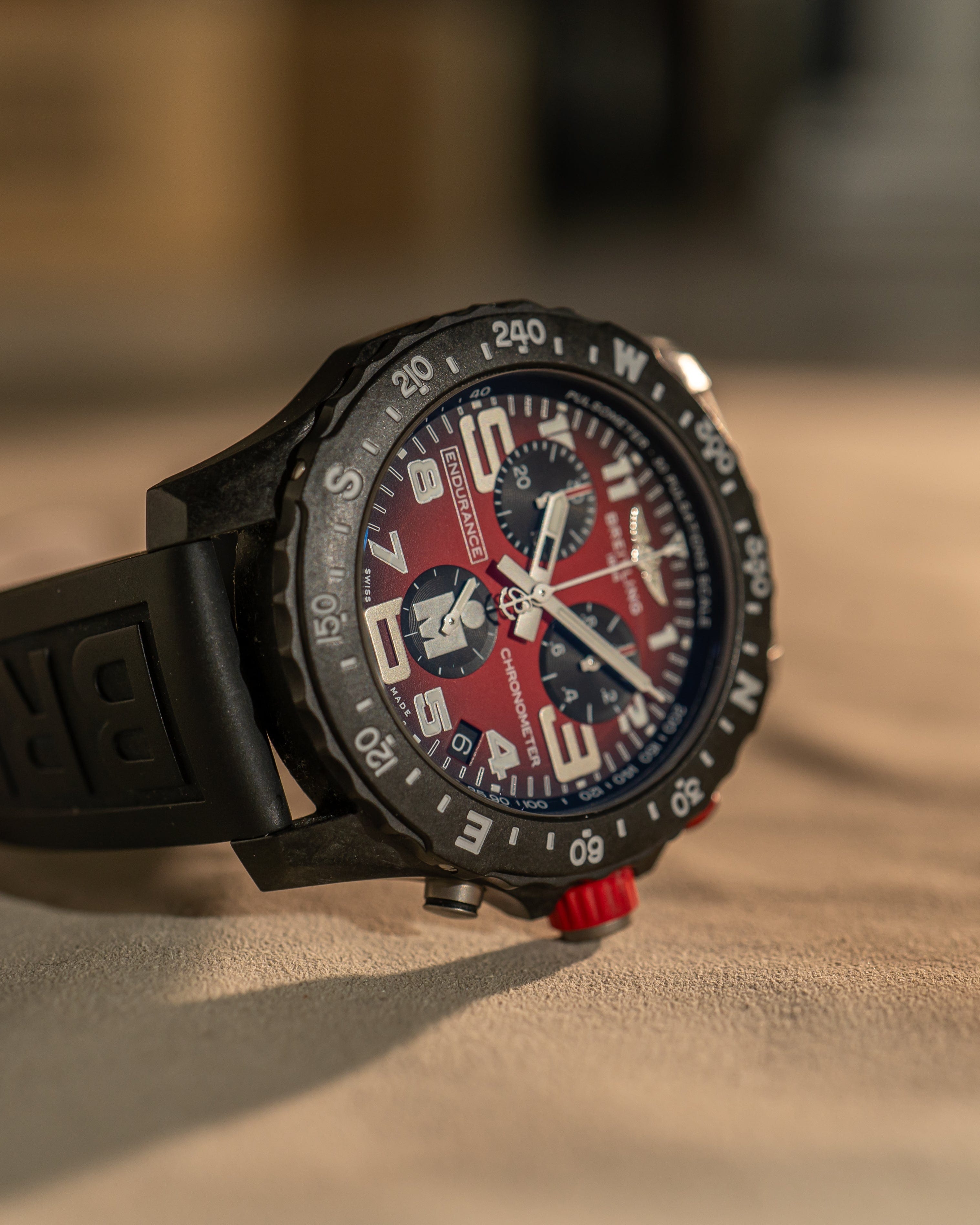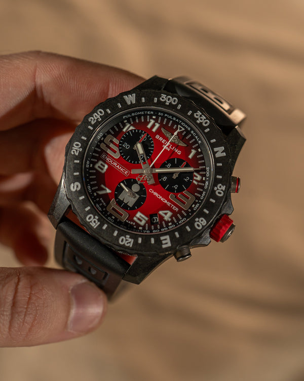 A bold and lightweight sports chronograph, the Breitling Endurance Pro Ironman X82310 is purpose-built for performance and endurance, combining cutting-edge materials with a striking red-and-black color scheme.