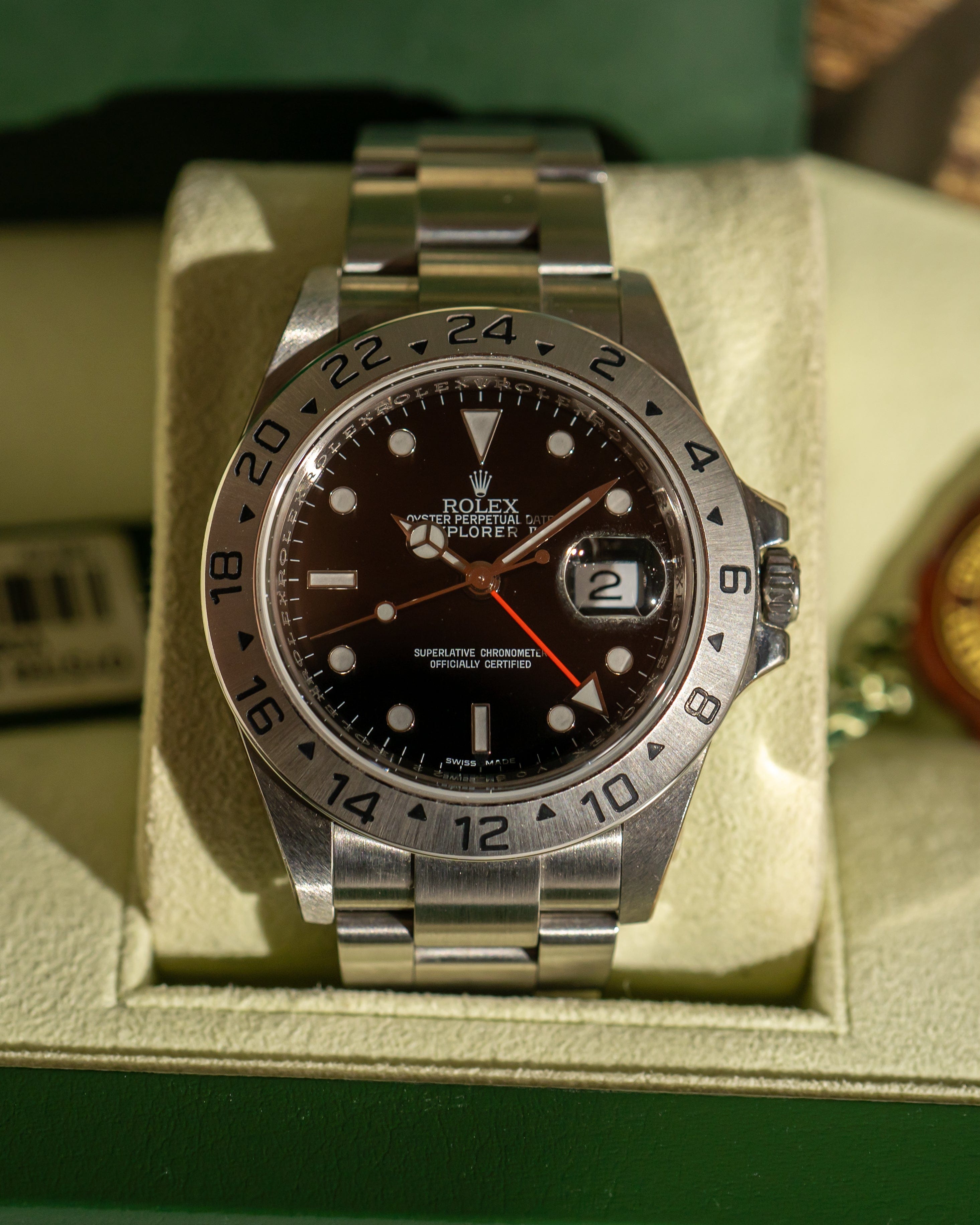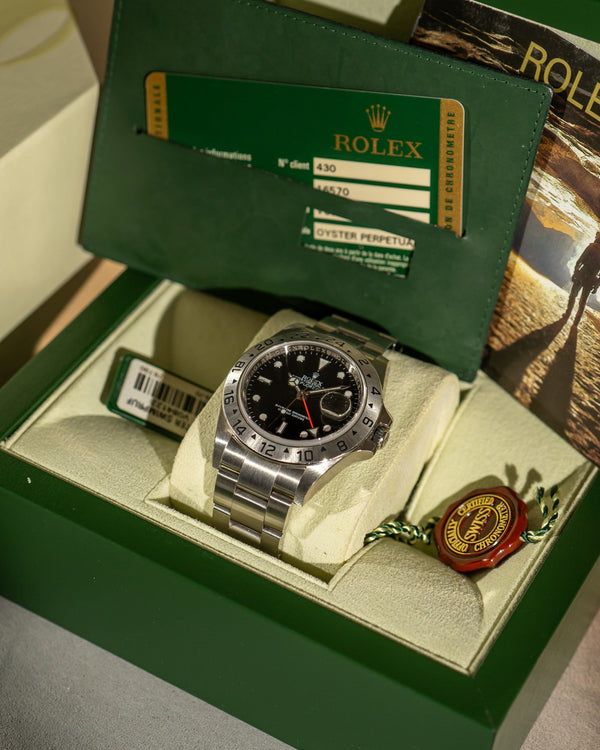 This 2009 Explorer II 16570 is a rare time capsule, offering collectors a pristine example of a beloved reference known for its rugged reliability and understated tool-watch aesthetic.
