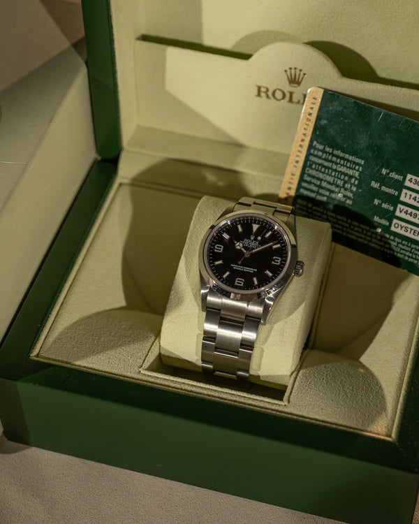 The Rolex Explorer 114270 remains a benchmark for tool watch design—compact, reliable, and rich with mountaineering heritage.