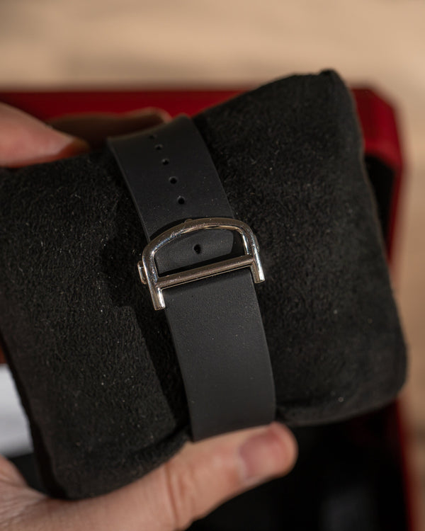 • Bracelet: Black rubber strap with steel pin buckle