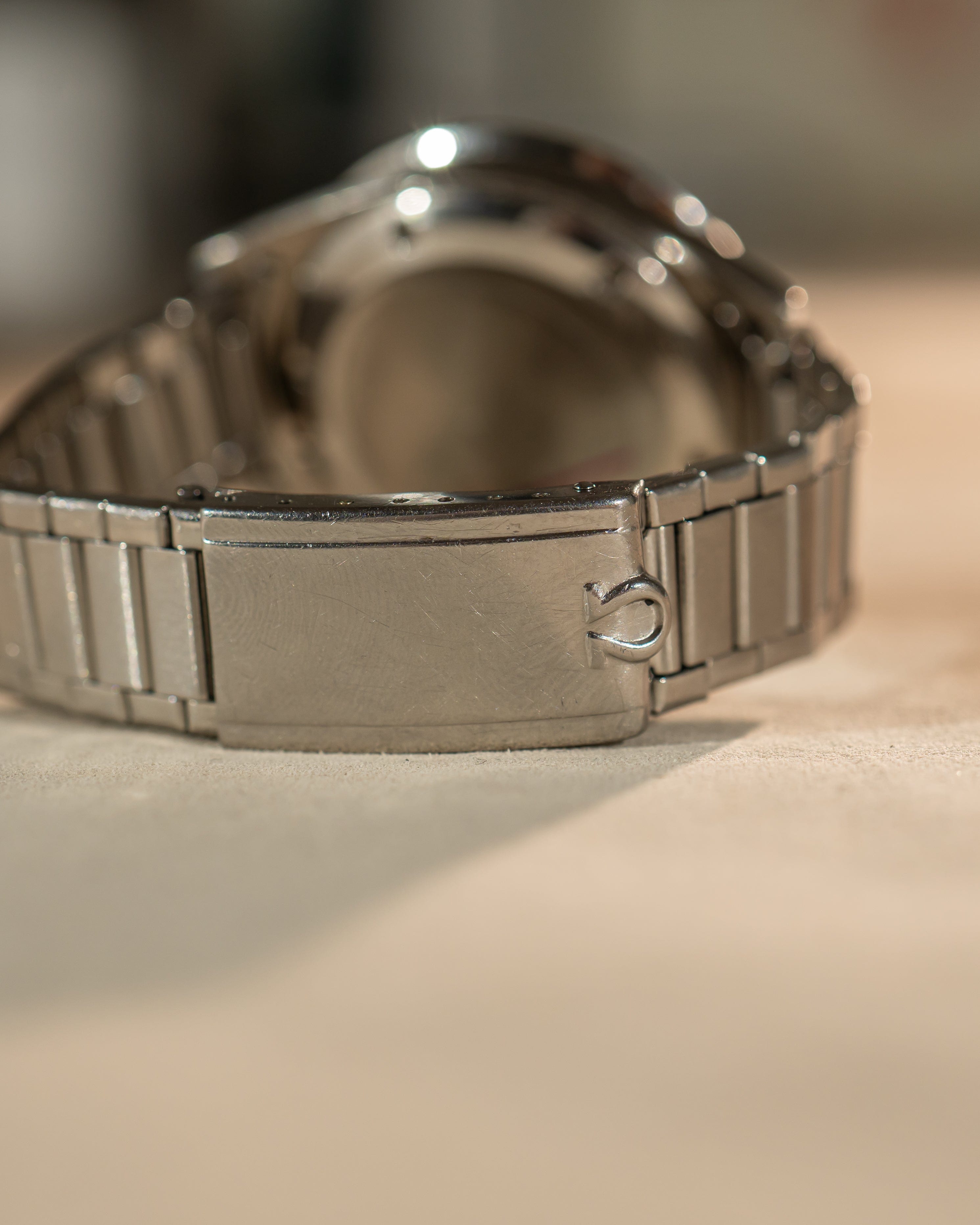 A highly collectible example of early Speedmaster history, this Omega CK2998-2 showcases the iconic pre-Moon design with its Alpha hands, applied logo, and symmetrical case—paired with the rare original 7912 flat link bracelet for added vintage appeal.