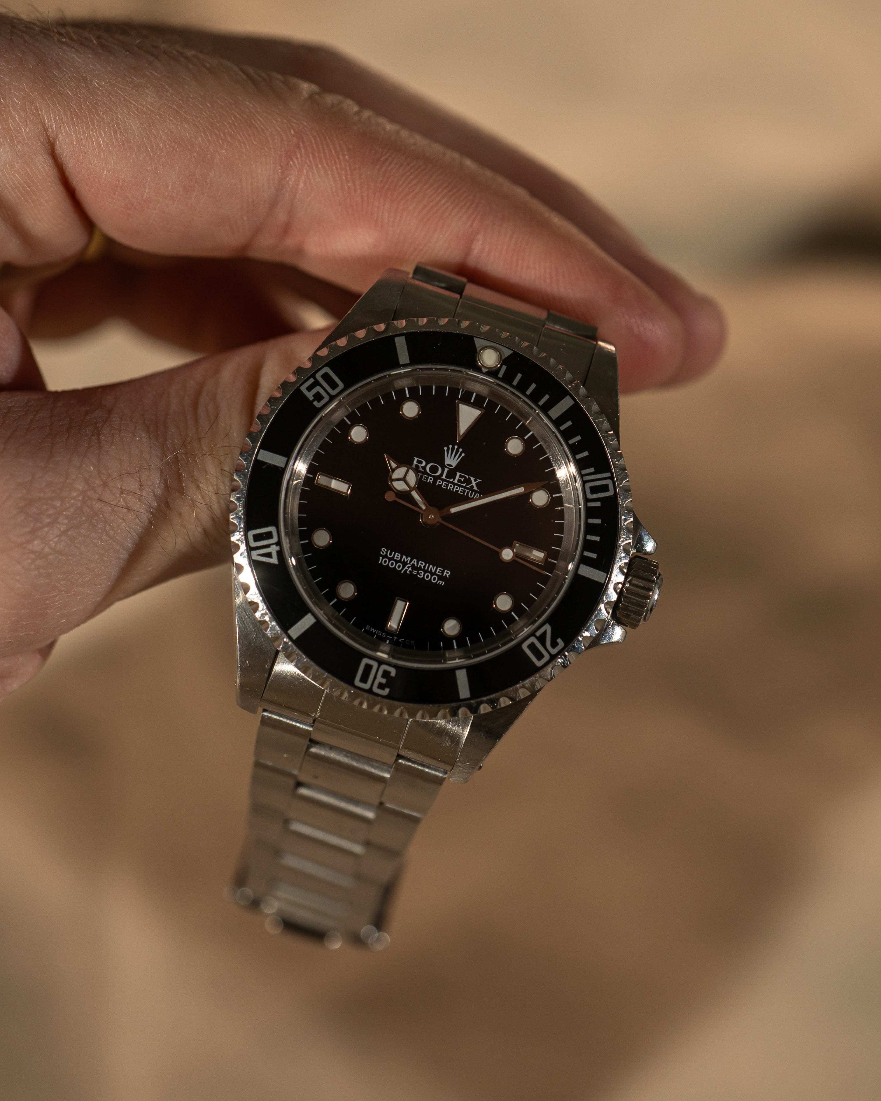 A classic no-date Rolex Submariner 14060, embodying the purest form of the iconic dive watch. Loved for its symmetry, simplicity, and tool-watch heritage.