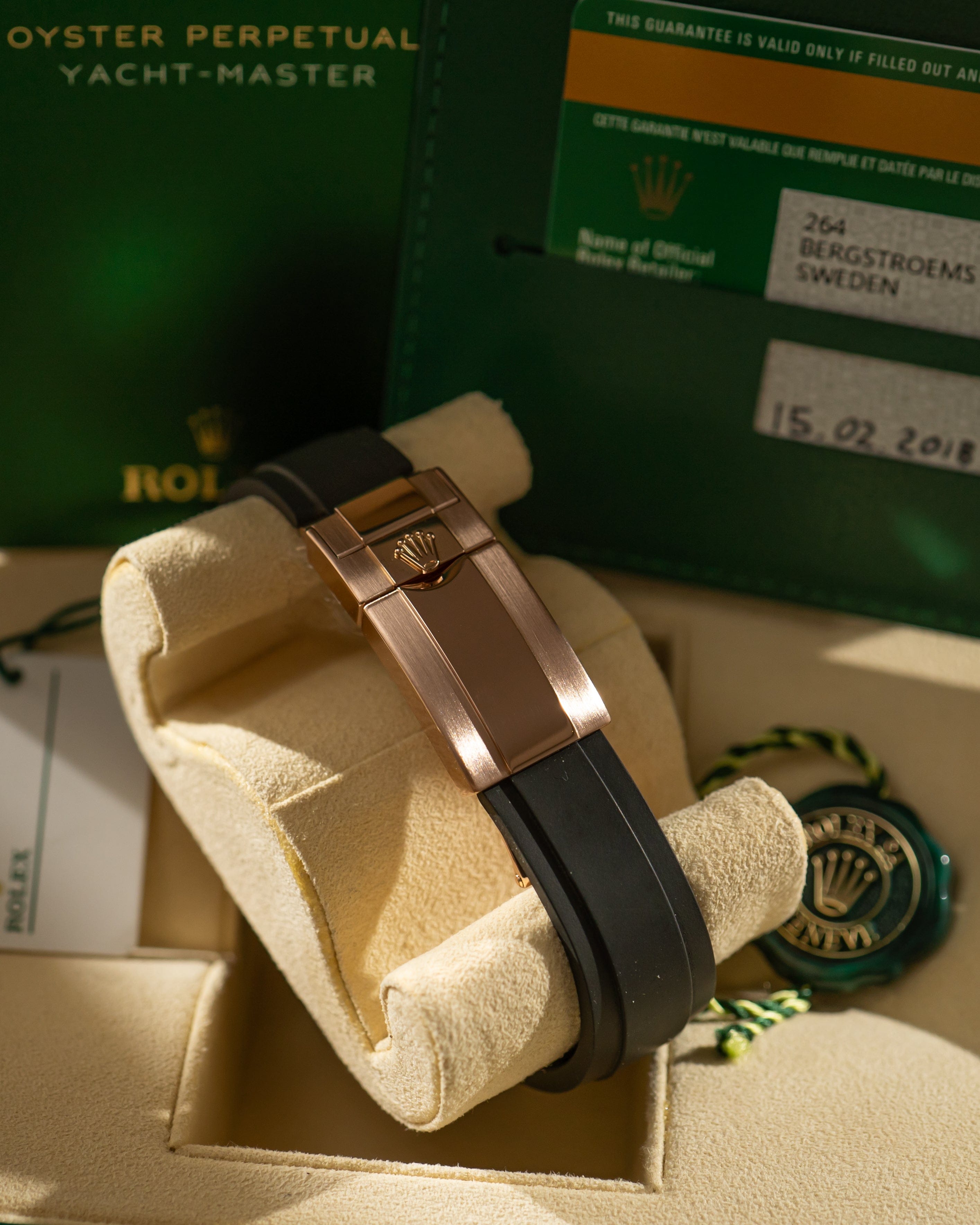 The Yacht-Master 116655 is a perfect blend of sport and luxury, offering the robustness of a professional Rolex with the warmth and exclusivity of Everose gold. Even without the outer box, this full-set example in excellent condition remains a highly desirable and wearable modern Rolex.