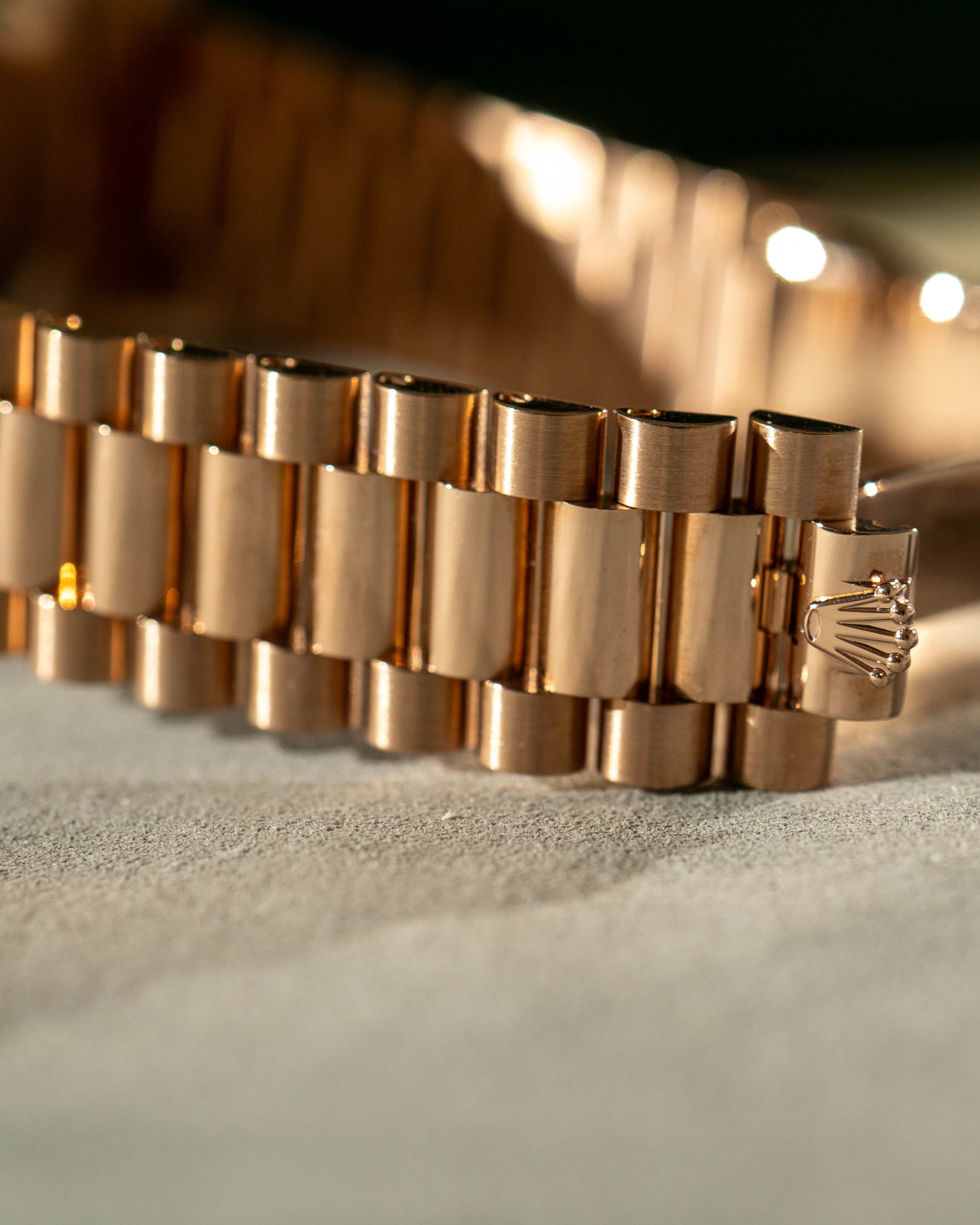 • Bracelet: President bracelet in Everose gold with concealed Crownclasp