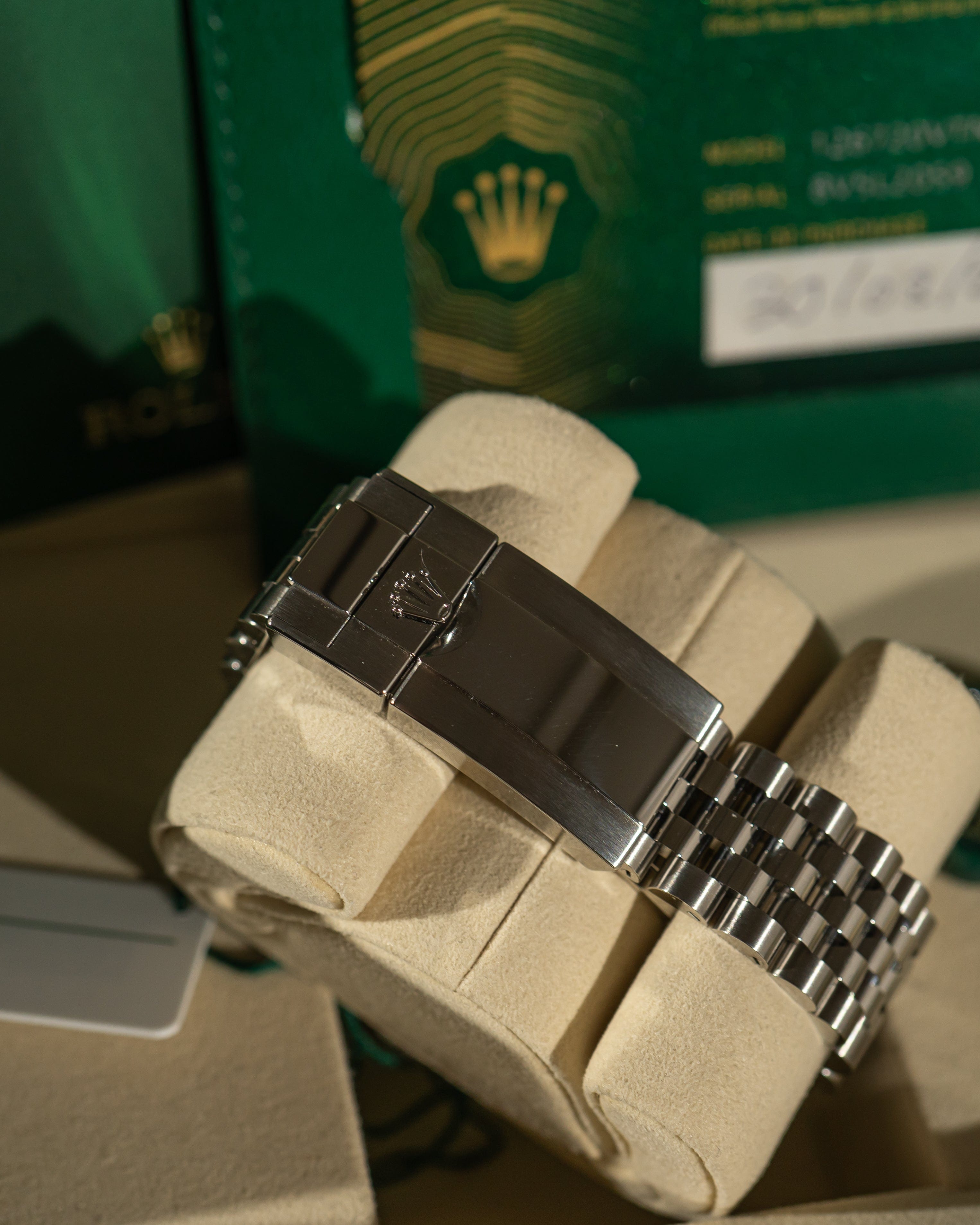 The Caliber 3285 movement ensures precise timekeeping and travel-friendly functionality, while the left-handed crown layout offers a distinctive twist on a modern classic.
