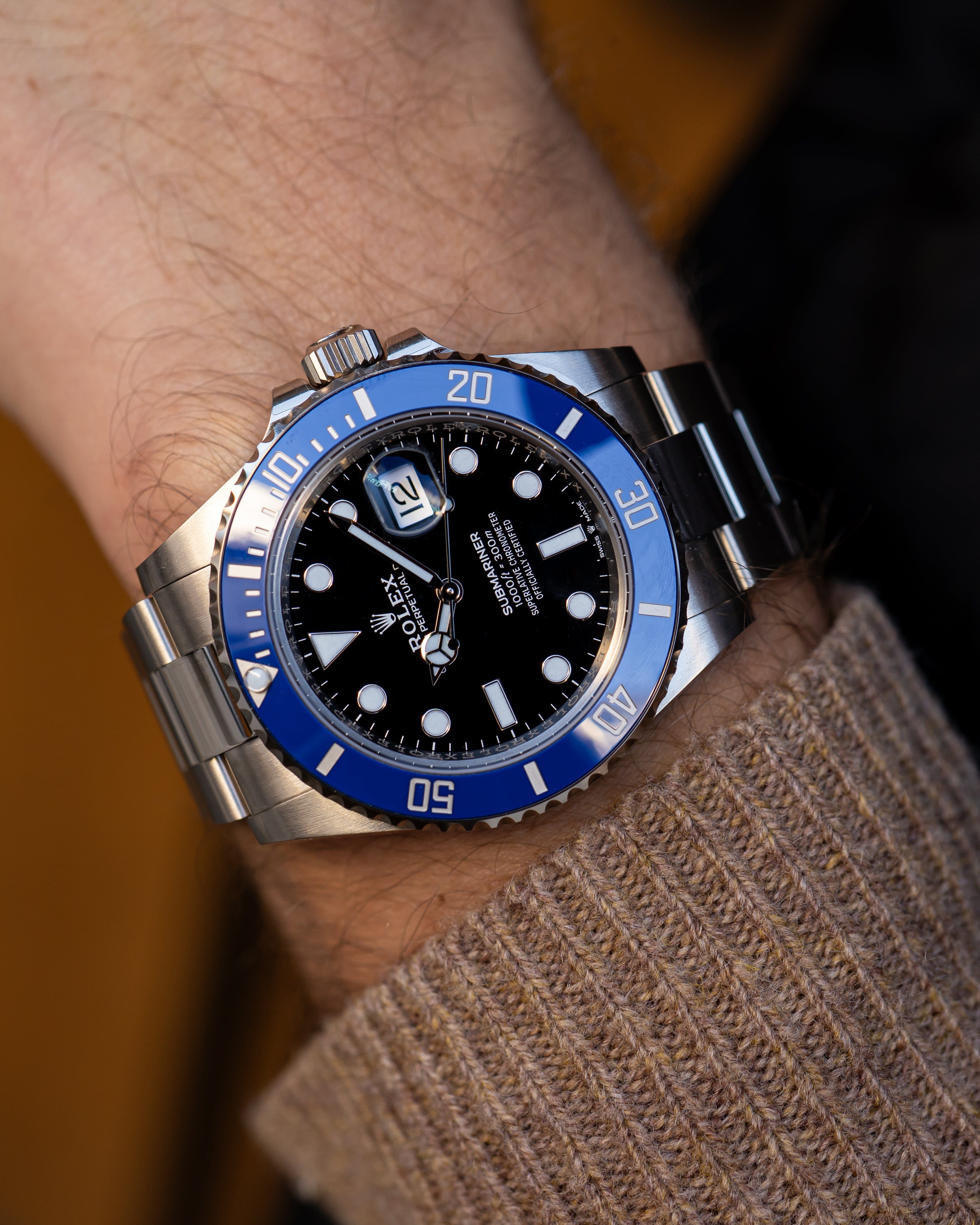 This white gold Submariner stands out with its luxurious build and distinctive colorway, offering the robustness of a tool watch with the elegance of precious metal.