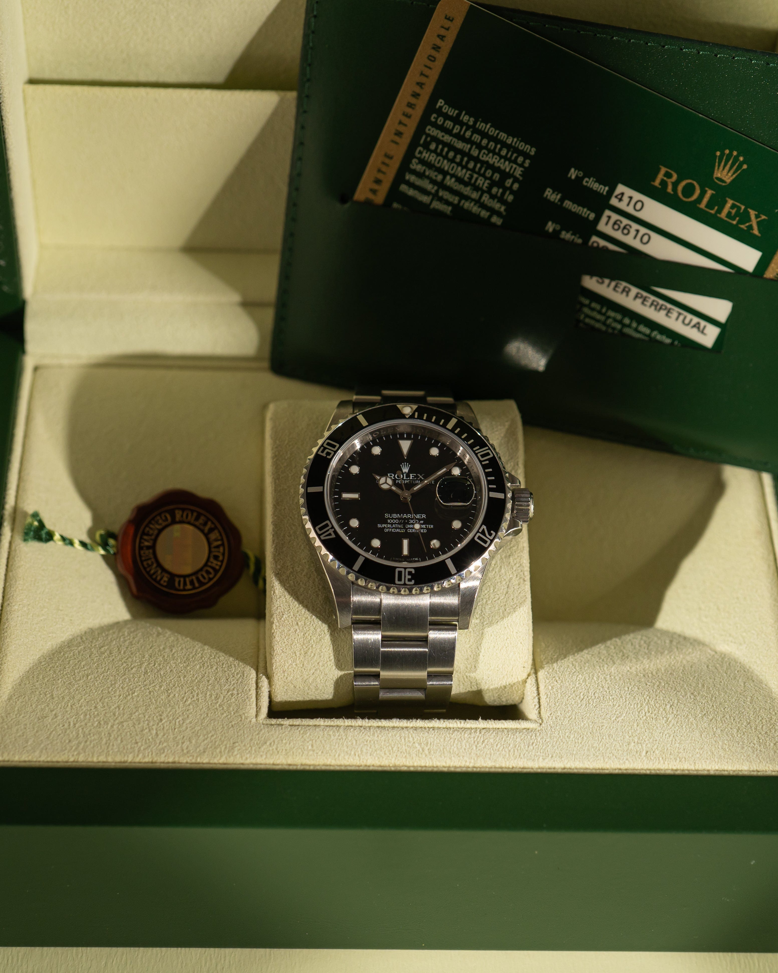 A classic five-digit Submariner, the 16610 combines Rolex’s robust engineering with enduring design—an essential reference for any serious dive watch collection.