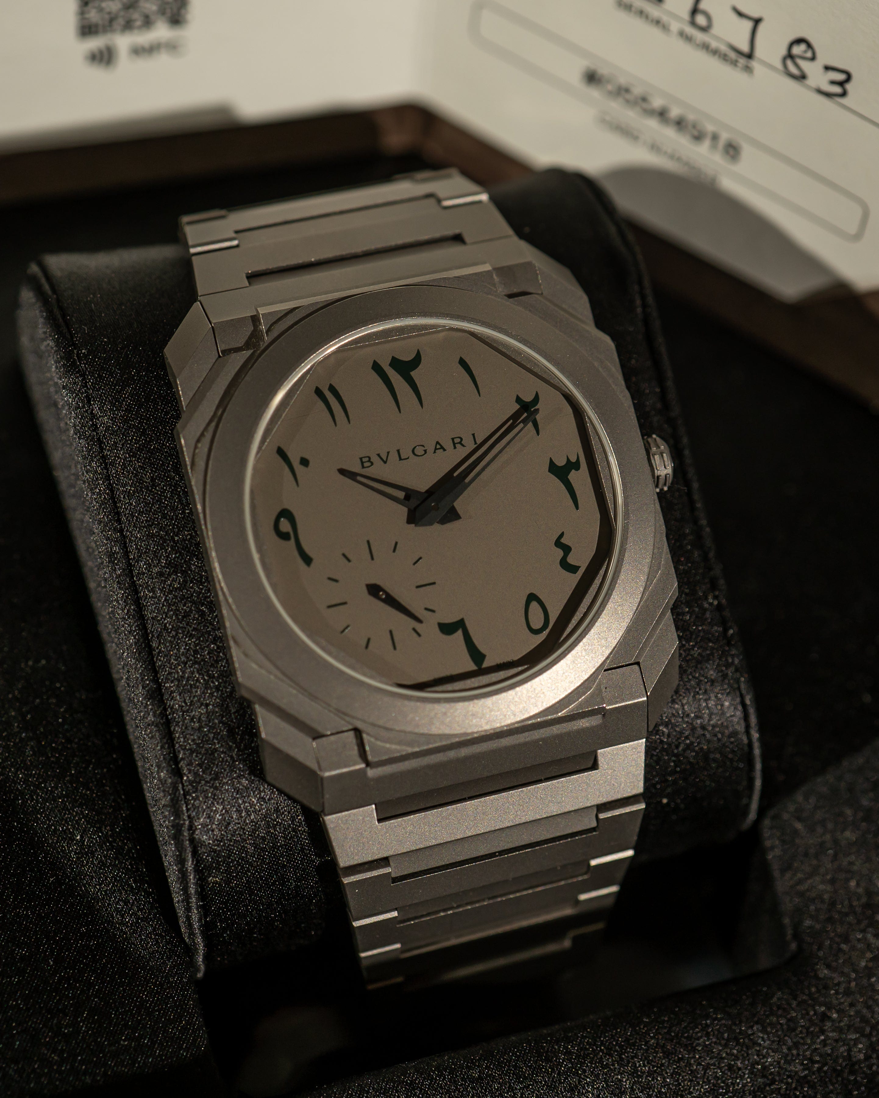 At just 5.15mm thick, the Octo Finissimo 103023 remains one of the thinnest automatic watches ever made—here elevated by a rare dial configuration that sets it apart in both function and form.