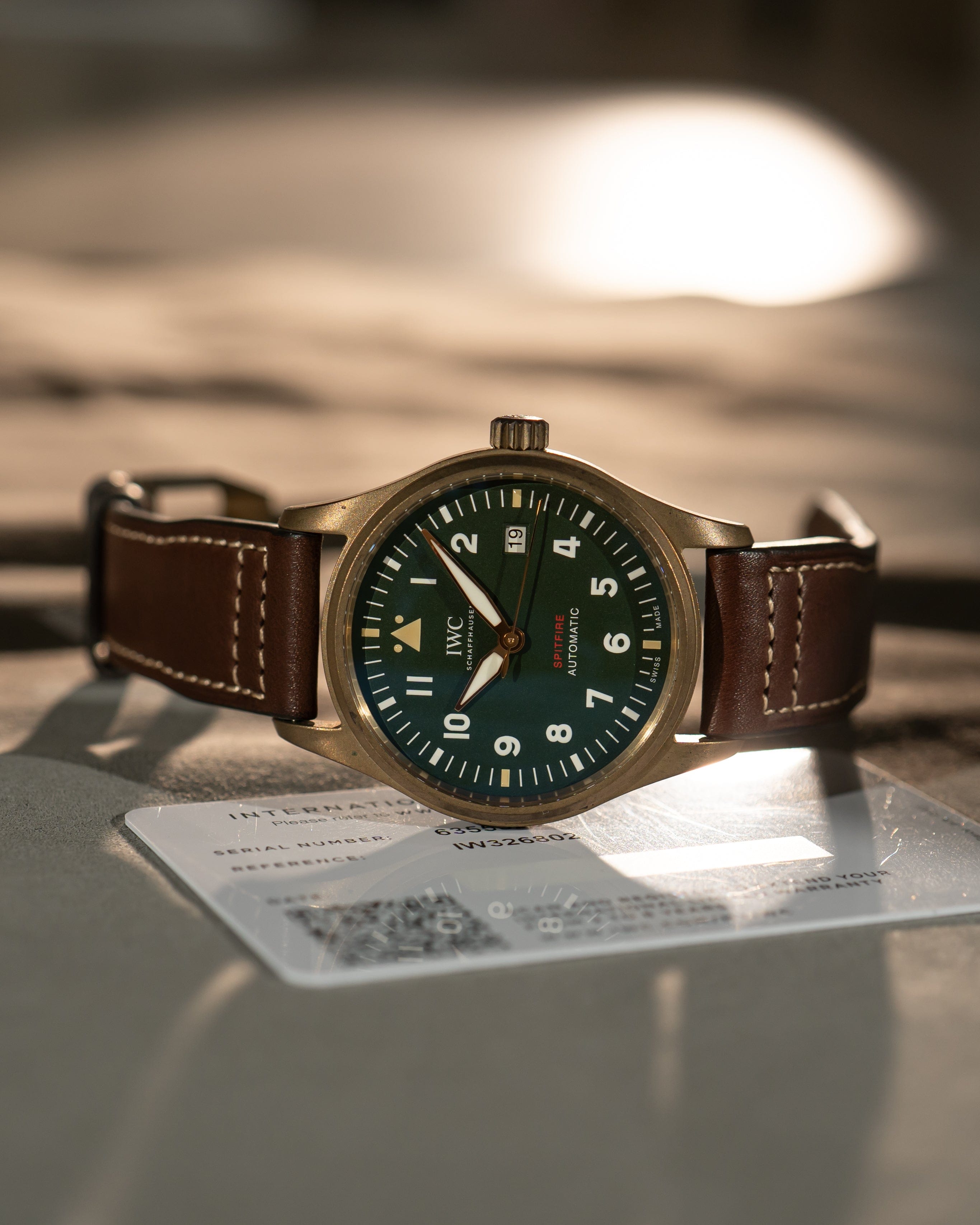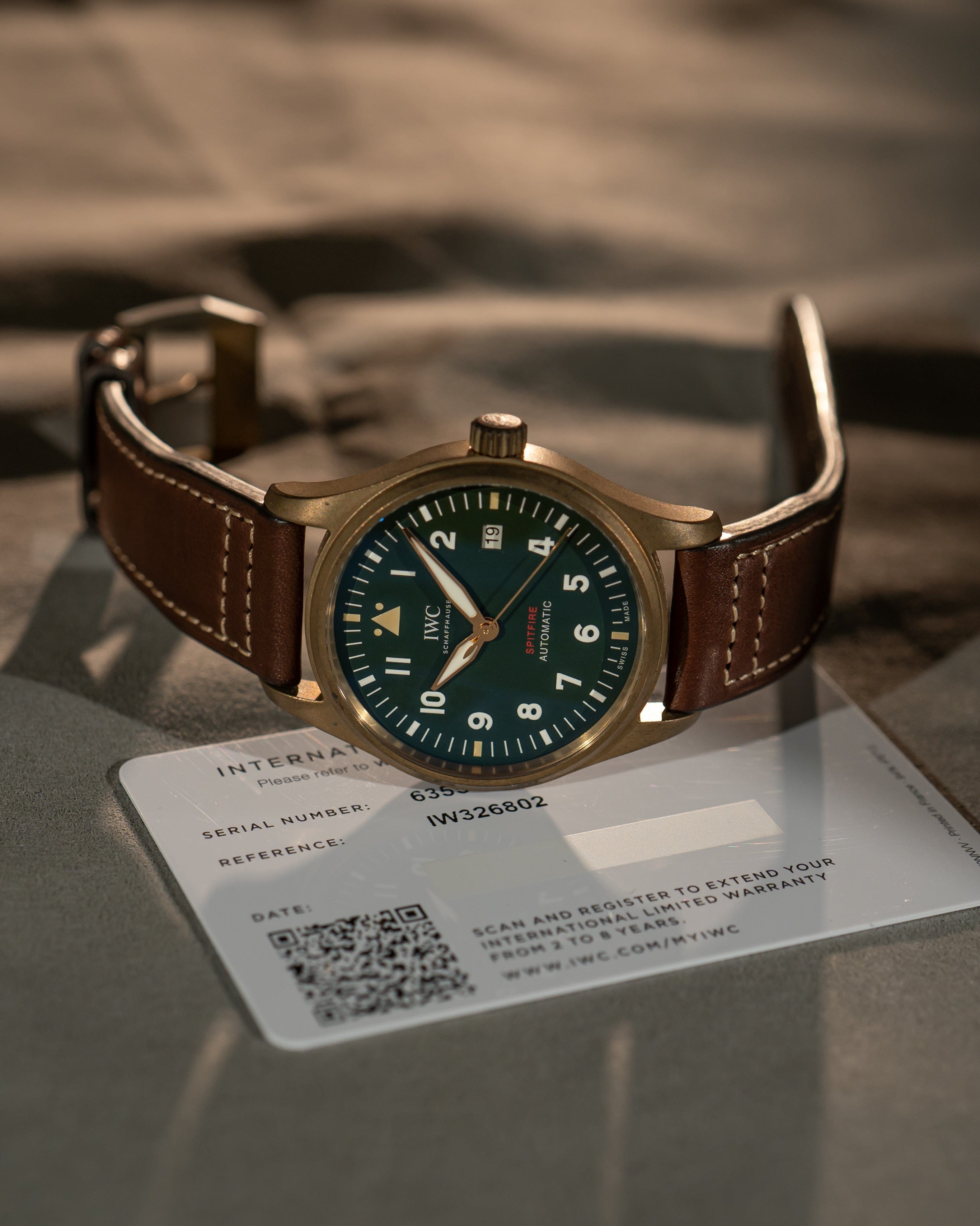 With its in-house movement and bronze case, this IWC Spitfire offers a compelling mix of heritage-inspired design and long-term reliability—enhanced by an 8-year international warranty.